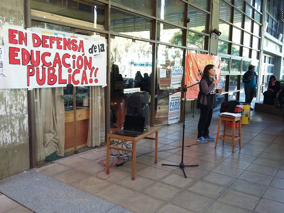 Debatimos sobre el Proyecto de Ingreso y Permanencia de la Escuela Normal “Juan Pascual Pringles” (ENJPP) de la Universidad de San Luis y terminamos la jornada con una clase pública sobre la criminalización de la protesta y de la pobreza: una mirada ante la avanzada represiva de los Estados para que no avancen contra nuestra educación pública, por el pago de las deudas salariales del 2016 y por un mayor presupuesto para mejores condiciones de trabajo y estudio.