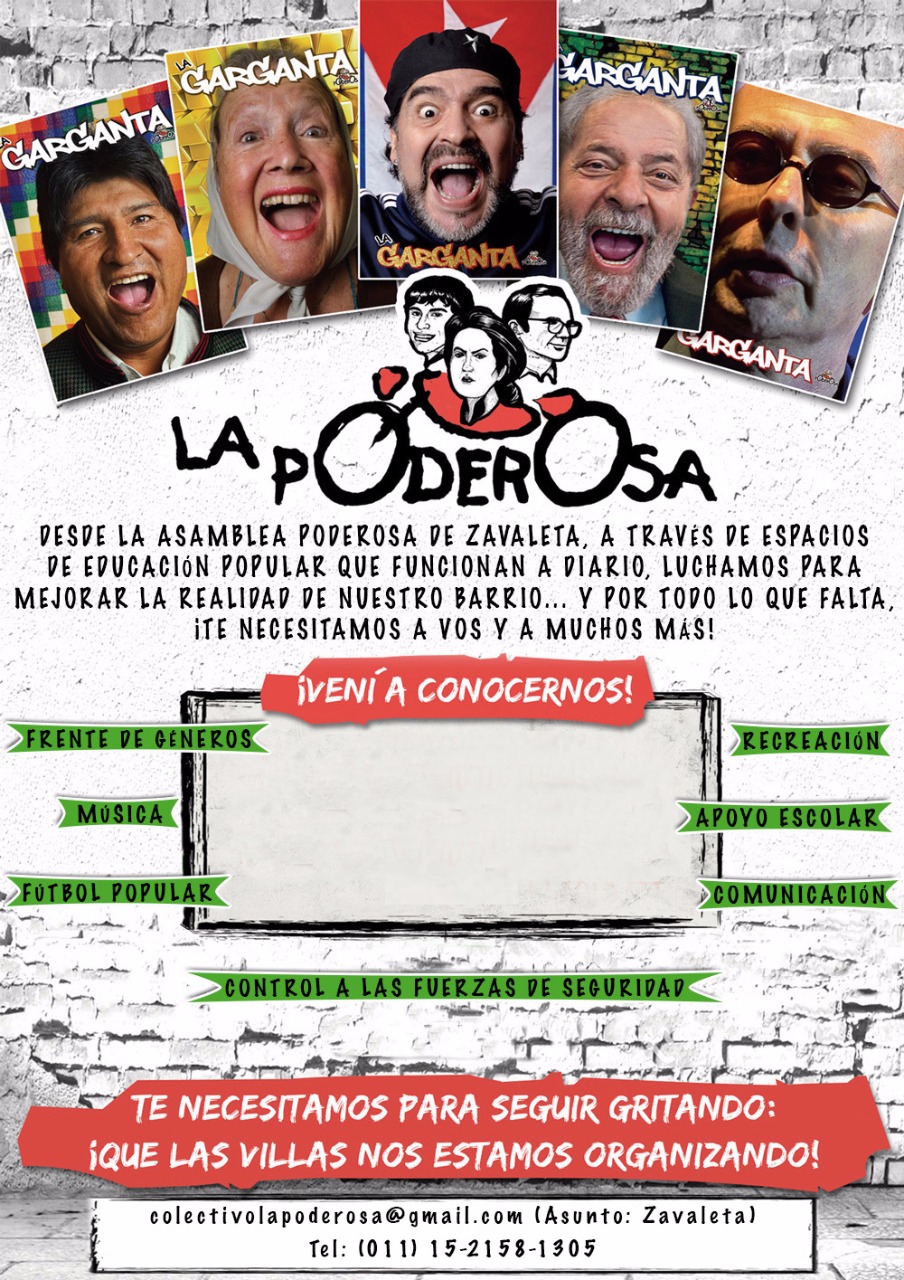 En la asamblea Poderosa de Zavaleta necesitamos manos que nos ayuden a moldear futuros y pies que pisen el barro, ¡para seguir construyendo poder popular! Sumate a transformar la realidad desde apoyo escolar, pateando una pelota en fútbol popular, al sonido de los instrumentos en el taller de música, registrando nuestra realidad en el taller de fotografía y más… ¡Te esperamos!