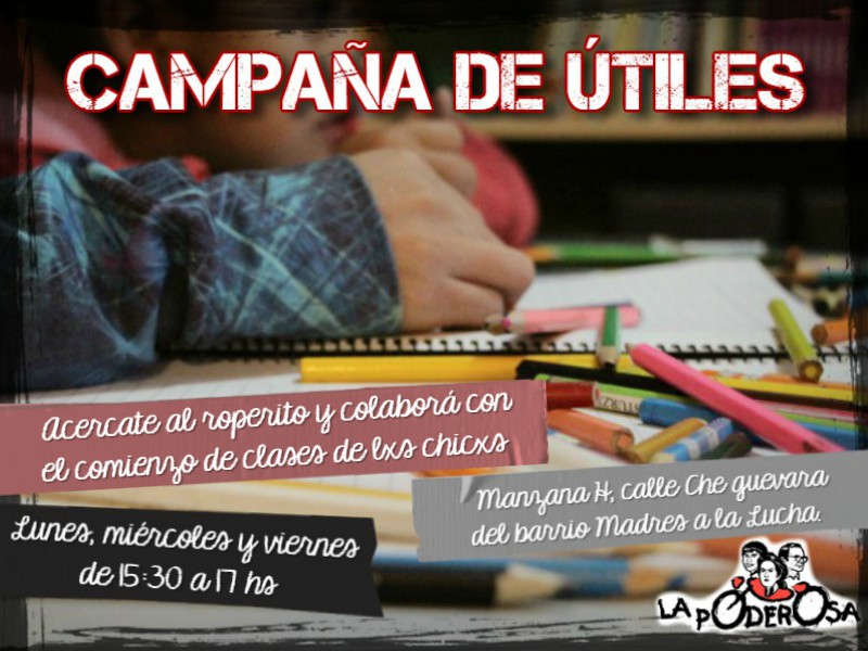 Empezaron las clases y desde el Ropero Solidario Madres Poderosas lanzamos una campaña para recolectar útiles escolares y guardapolvos.