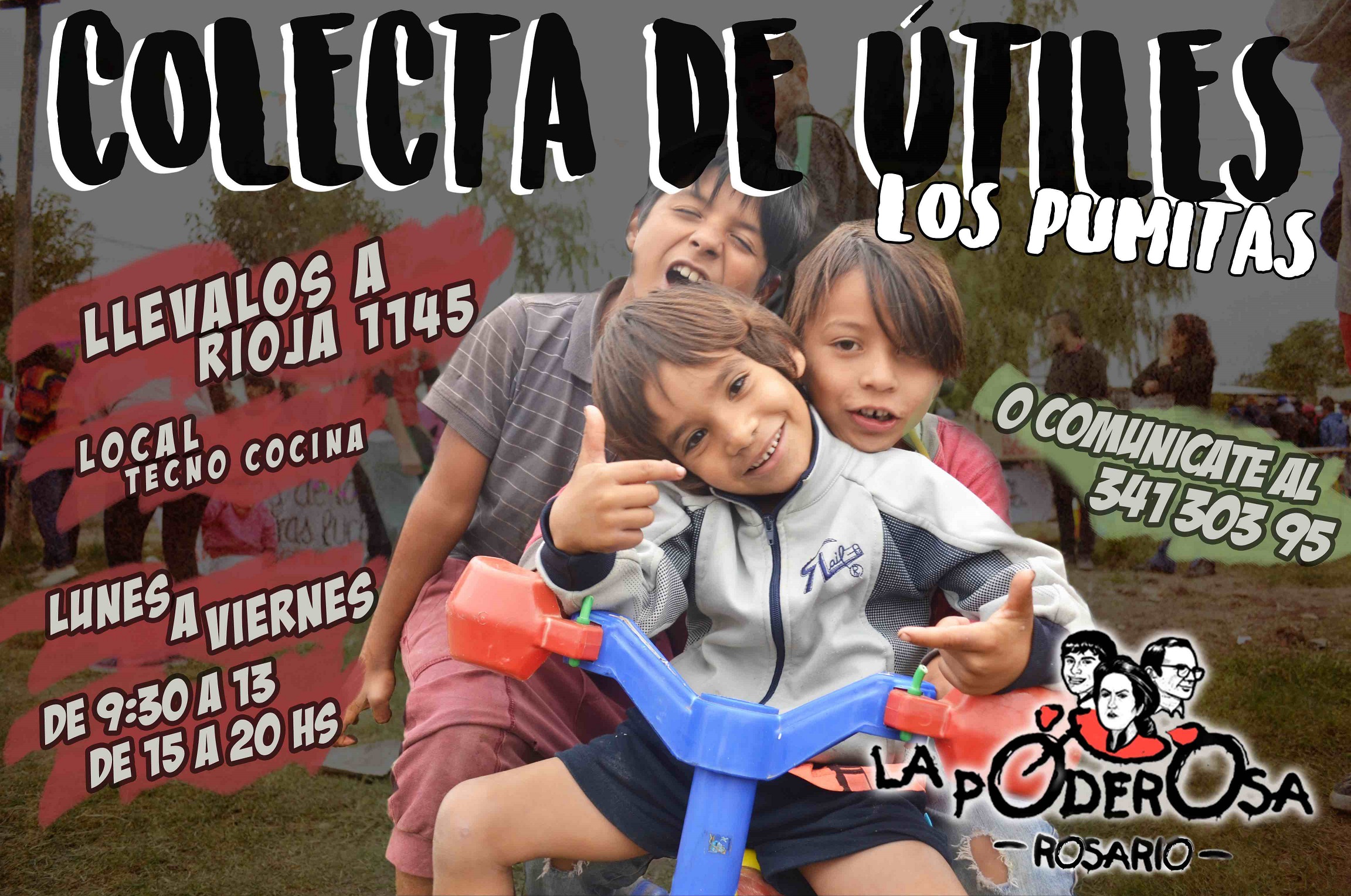 Desde la asamblea poderosa del barrio Los Pumitas, en la zona norte de Rosario, impulsamos esta colecta para que los pibes y pibas del barrio puedan ir a la Escuela. Porque es su derecho y porque ellos son razón y motor de casi todos nuestros proyectos es que apostamos a una Educación verdaderamente popular y transformadora, donde nadie quede afuera por no tener zapatillas para salir a jugar o lápices para dibujar.