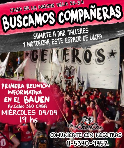 Buscamos compañeras que quieran sumarse a seguir construyendo un feminismo villero organizado y autogestivo.