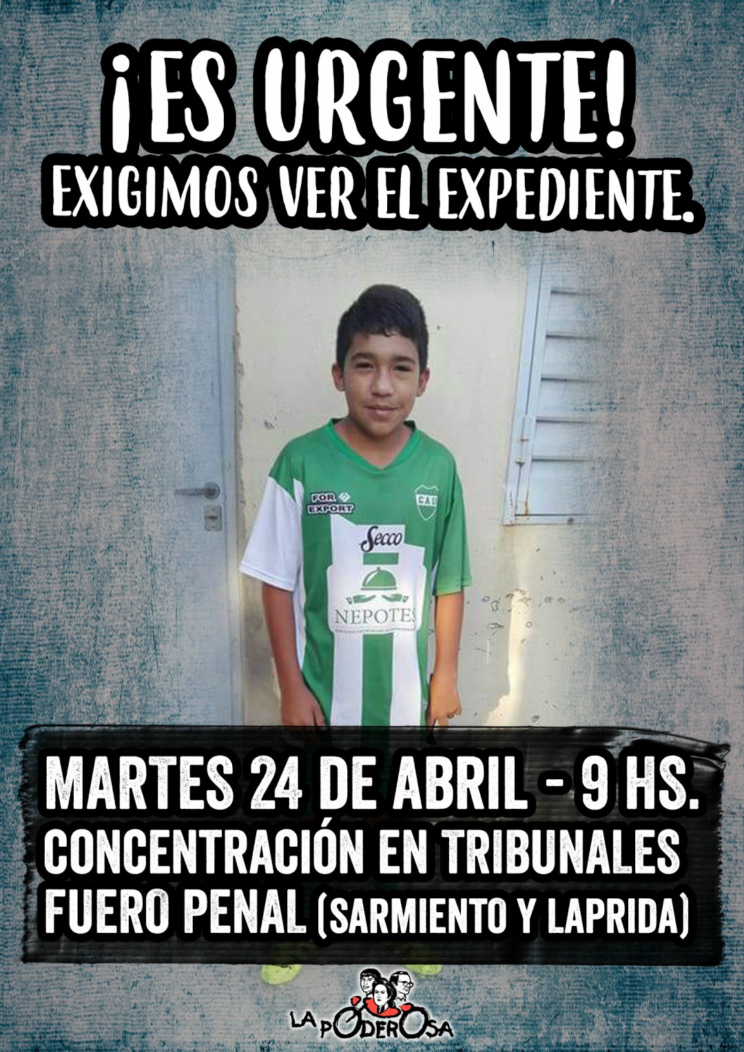 Cansados de la inoperancia de la Fiscalía 8va, nuevamente, familiares y amigos de Facundo Ferreira convocamos a todas las organizaciones sociales y políticas, organismos de derechos humanos y ciudadanía en general a participar de la concentración que se llevará a cabo el día martes 24 de abril a las 9 de la mañana en el edificio de Tribunales Fuero Penal ubicado en Av. Sarmiento esquina Laprida.