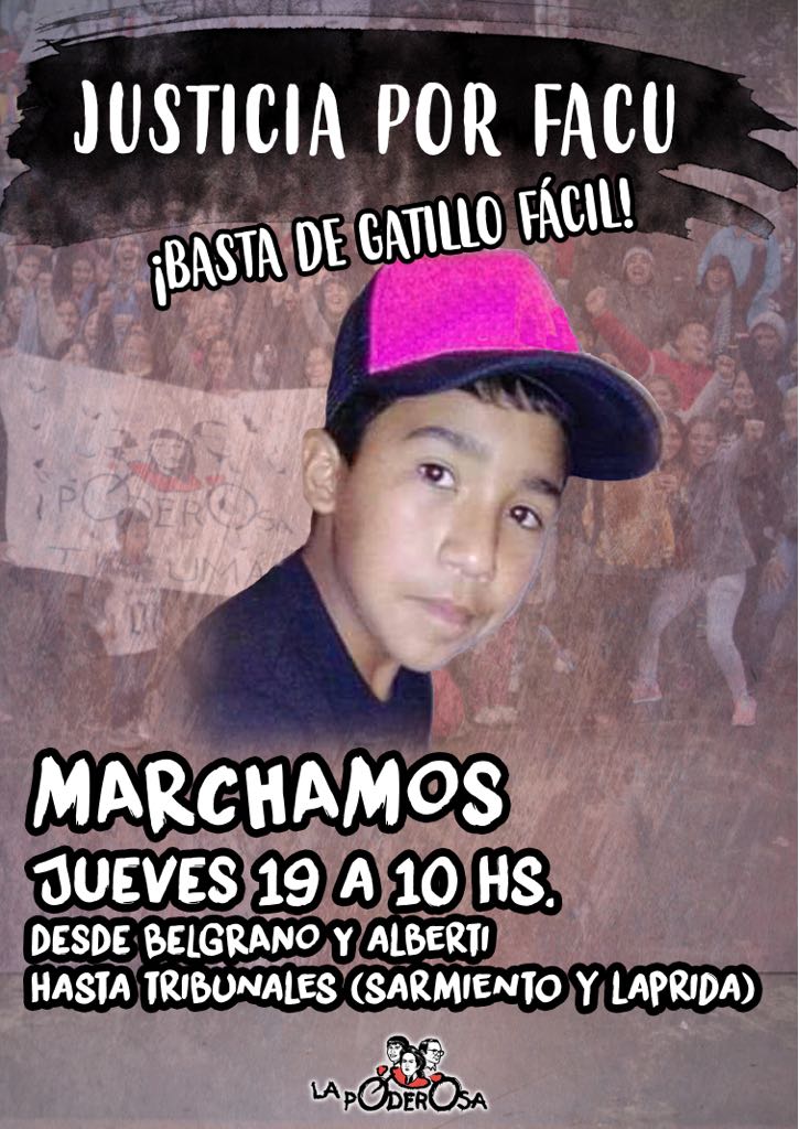 El encuentro será en la esquina de Avenida Belgrano y calle Manuel Alberti, a las 9, con destino al edificio de Tribunales Fuero Penal de Avenida Sarmiento 431, para seguir exigiendo justicia por Facundo Ferreira y por todos los casos de gatillo fácil de la provincia.