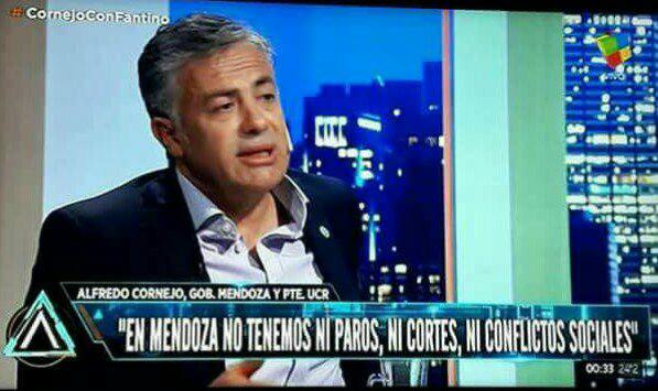 Fan del negacionismo, Cornejo afirma que ahora mismo Mendoza no tiene paros, ni cortes, ni conflictos. Y digan que justo se les terminó el zócalo, cuando estaba por agregar que tampoco tiene agua porque la desvía hacia lagos privados, ni tiene respuestas para el vaciamiento de la escuela pública, ni tiene vivo a Fabio Basualdo, ni tiene preso al policía que lo mató, ni tiene ganas de saber cómo se profugó. Ojalá nunca grabe ningún otro spot con forma de reportaje, pero si vuelve a suceder procuren varios renglones de videograph para la opereta de prensa, así pueden aclarar que tampoco tiene vergüenza.