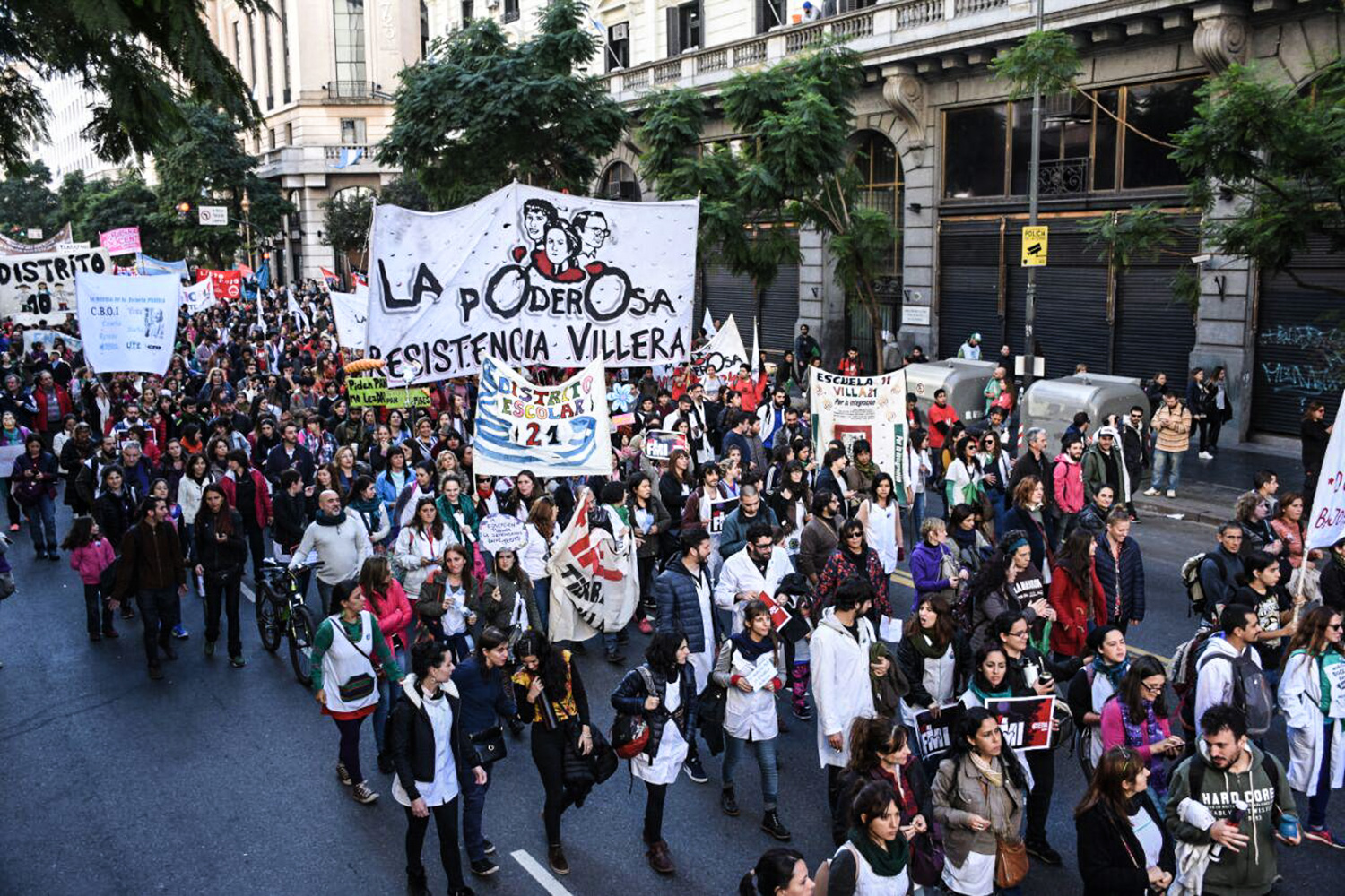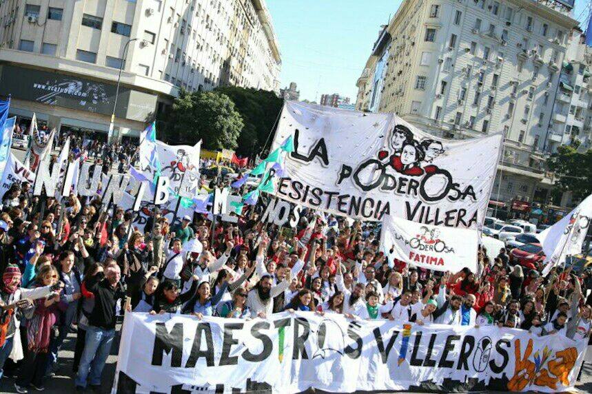 “Estamos movilizándonos todos los maestros y maestras villeras por esta emergencia educativa, que nos tiene soportando recortes tras recortes, mientras muchos padres y madres de nuestra escuela pública padecen la falta de trabajo y la falta de comida”, Maxi Malfatti, educador de la 6, en la Villa 21-24.