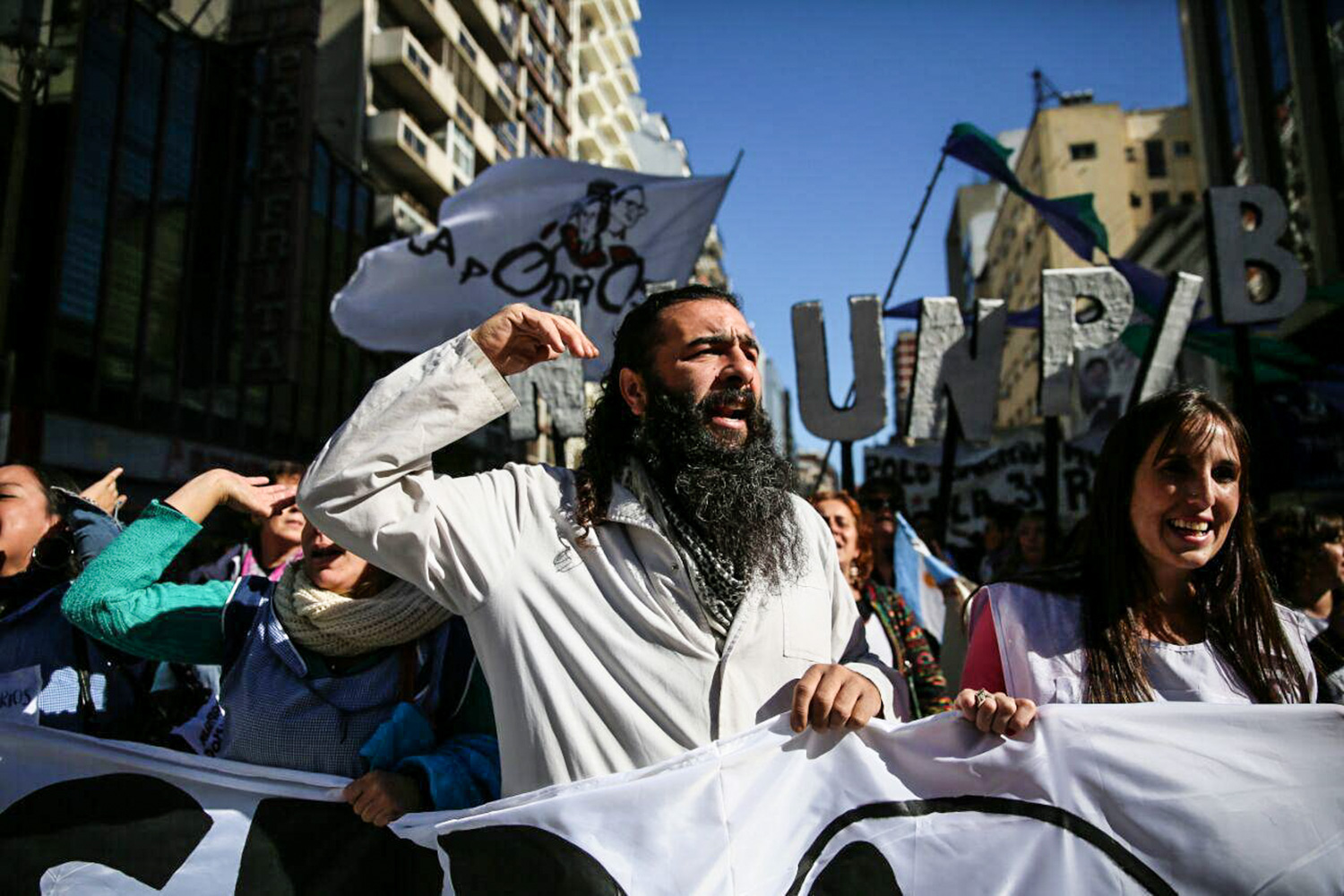 “Estamos en situación crítica, por la inflación, la devaluación y el poder adquisitivo que perdimos, con ese aumento burlón del 5%, mientras el Director General de las Escuelas provinciales decía que los profesores nos comemos las tortitas de los niños”, Pablo Luján, maestro de la José Graneros, Lavalle.