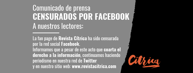 Ahora parece que la Revista Cítrica deberá pasar el «Día del Periodista» sin actualizar su Facebook porque continúa en penitencia, tras haber publicado la violenta represión a los senegaleses: si se trata de no dañar ninguna sensibilidad, debieran bloquearle la página al Gobierno de la Ciudad.