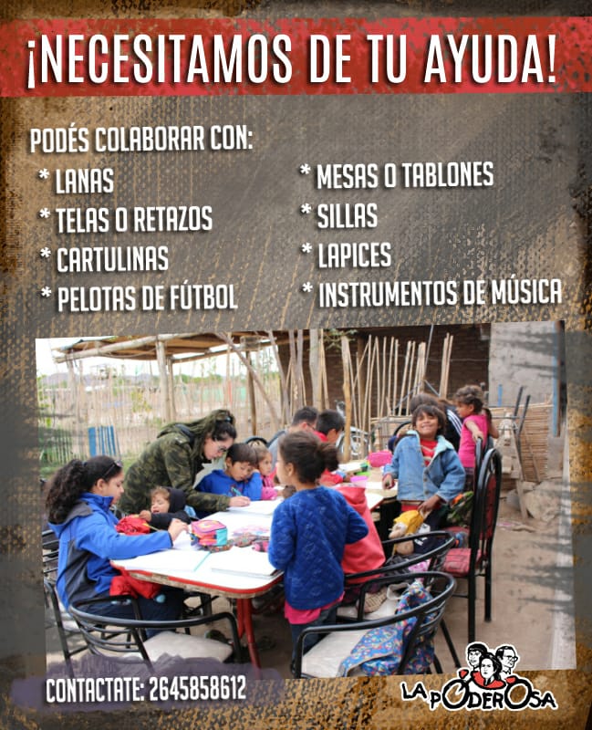 En nuestros barrios sanjuaninos crecemos día a día; ahora tenemos talleres de educación y fútbol popular, arte, música, lectura y telar en Villa Marini (Santa Lucia), Barrio Malvinas II (Chimbas) y en la comunidad Huarpe de Punta del Agua.