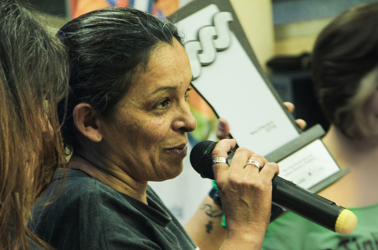 Y al finalizar la actividad le entregaron a Viviana, el “Reconocimiento Emi D´Ambra a la Labor Social y Política”, por su trayectoria de lucha constante en la búsqueda de verdad y exigencia de justicia por la aparición de su hijo, desaparecido en democracia.
