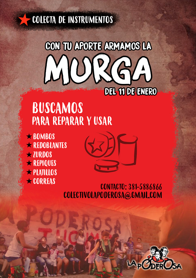 Necesitamos la donación de redoblantes, repiques, bombos, zurdos, platillos y correas. También podés colaborar con dinero en efectivo para hacerles los correspondientes arreglos.