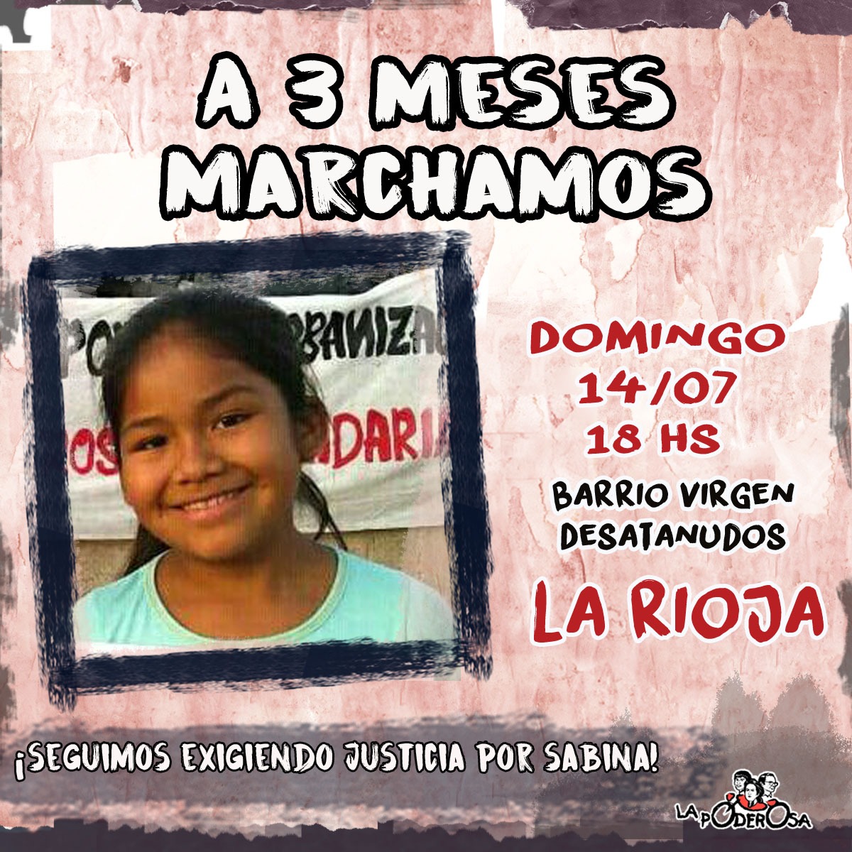 Marcharemos por las calles de nuestro barrio, ese que ella caminaba y corría junto a sus amiguitos a diario. Lo haremos acompañados de antorchas, velas y linternas alumbrando el abandono que nos sigue brindando el Estado.