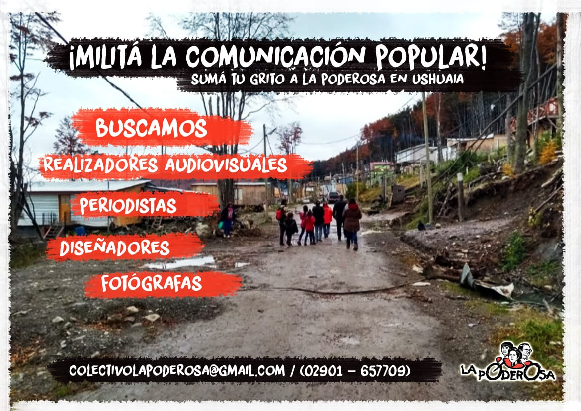 En Ushuaia andamos buscando y en el camino queremos encontrar comunicadores y comunicadoras con ganas de militar la comunicación popular. Buscamos fotógrafos y fotógrafas que no quieran quedarse atrás del ocular. También, diseñadores y diseñadoras que quieran transformar la realidad y realizadoras/es audiovisuales con ganas de hacer una buenas tomas de cotidianidad.