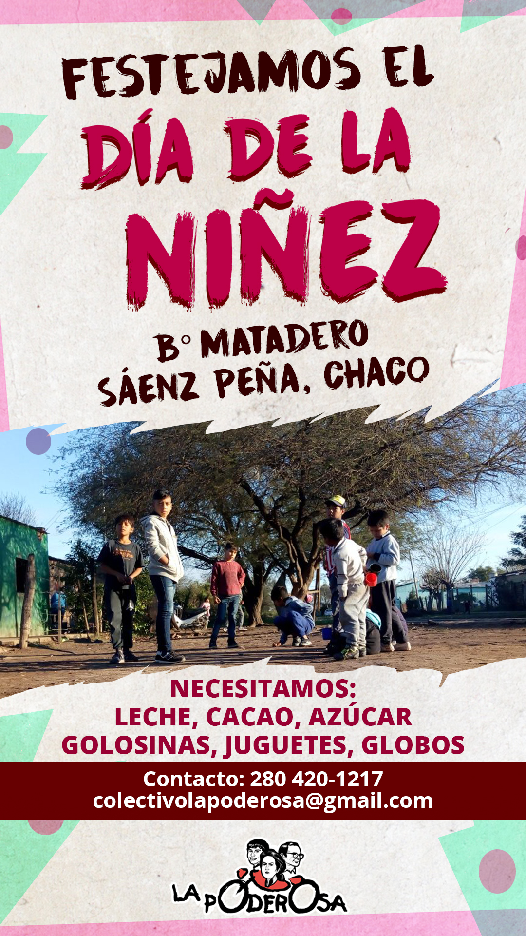 También te invitamos a participar y colaborar con la decoración y organización del mismo, que lo realizaremos el sábado 31 de agosto en El algarrobal, merendero y comedor poderoso que funciona todos los fines de semana en el barrio.