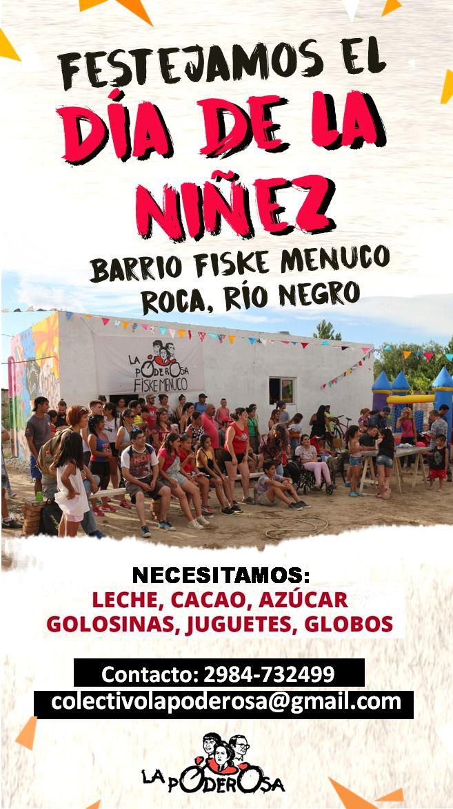 Este sábado 31 de agosto vamos a celebrar con las y los pibes del barrio Fiske Menuco su día. Nos estamos organizando para que tengan una jornada llena de diversión, juegos y risas. Para que el festejo sea como lo deseamos, necesitamos tu colaboración.