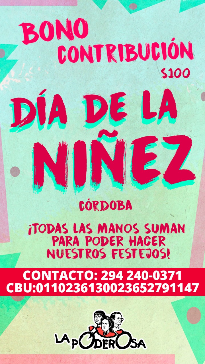 Podés aportar a la realización del festejo con un mínimo aporte voluntario a través de un bono colaborativo: CBU 0110236130023652791147