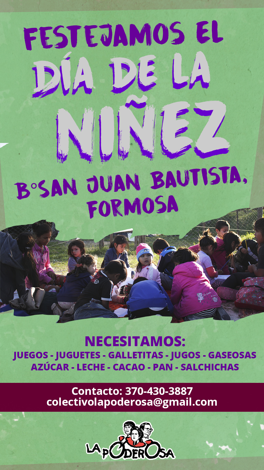 Festejaremos el Día de la Niñez el día 7 de septiembre a las 16 horas en el Parque Popular Soledad Barret, ubicado en Egidio Tassone 1400 de la ciudad de Formosa.