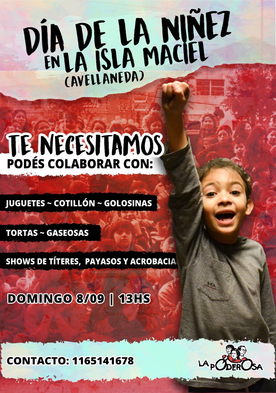 En la Isla Maciel, el 8/9 festejamos el día de la niñez y nos estamos organizando para que las pibas y los pibes puedan disfrutar como merecen.