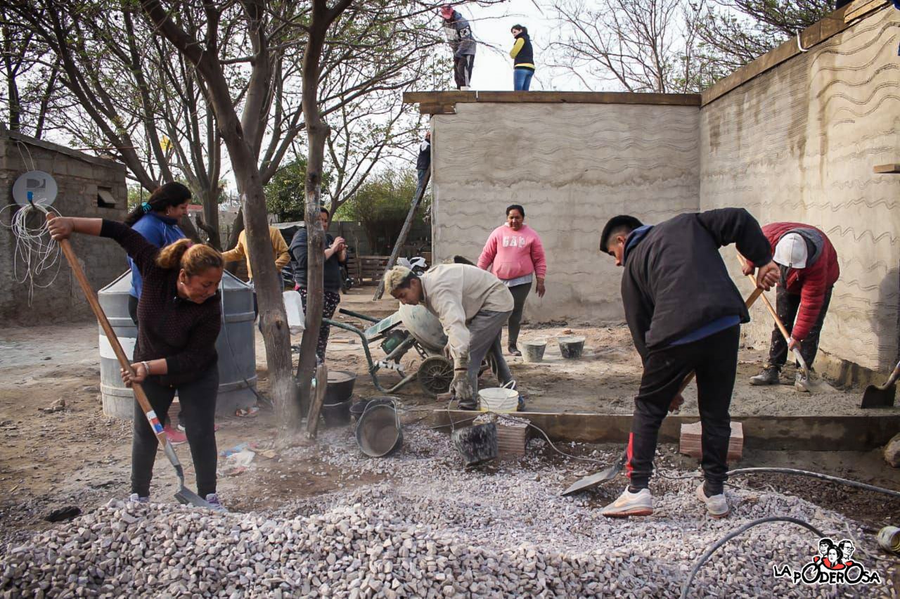 Ayer despertamos bien tempranito con ruidos de palas, andamios, carretillas y alguien silbando melodías que luego se convertirían en altoparlantes que musicalizaron la mañana. Eramos las compañeras del Frente de Géneros, los compañeros de la cooperativa de construcción «Los Pibes del Bosco Construyendo Sueños» y vecinos solidarios que comenzabamos la losa del techo de la Casa de las Mujeres y las Disidencias.