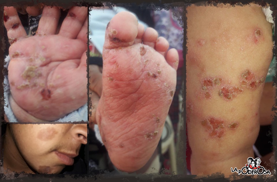 Por favor, tómense un minuto para ver las fotos. Así estamos en nuestro barrio, brotados, desesperadas. La sarna no sucede porque sí, hay un factor determinante: la pobreza. Comienza cuando aparecen unos granitos con agua en la piel, un cúmulo de ampollas y una sensación de que algo te camina por dentro. Te pica, te pica y no te para de picar. Una arranca a rascarse, una vez, dos, cien, pero después ya no podés ni doblar los dedos de las manos: el sarpullido se contagia con el contacto y se vuelve cada vez más doloroso. Poco a poco, te enloquece.