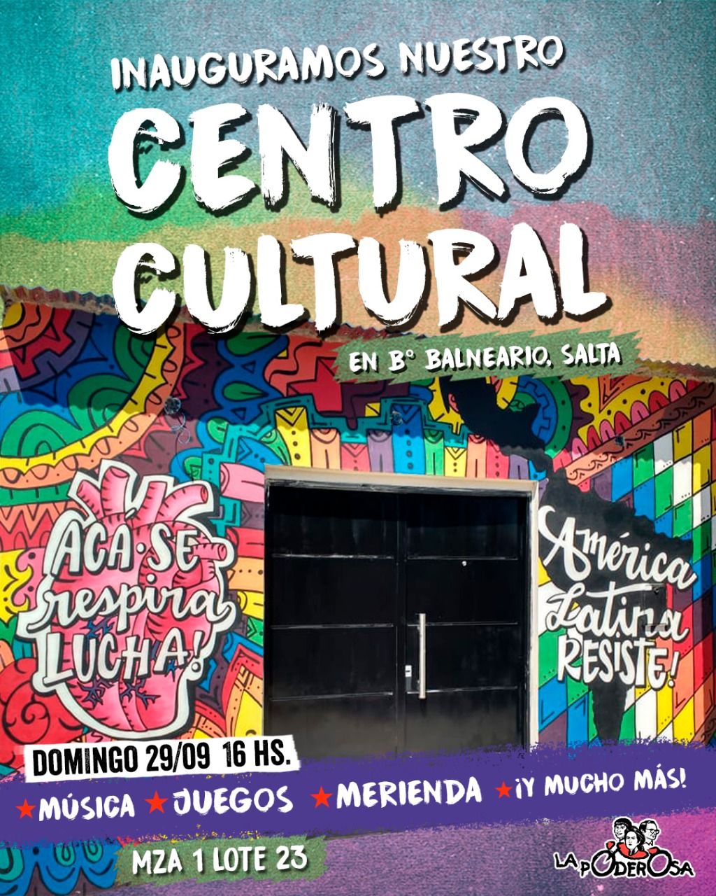 Invitamos a la comunidad en general a la inauguración de nuestro primer centro cultural en el Barrio Balneario, Zona Norte de la Capital, Manzana 1, Lote 23, el próximo domingo 29 de septiembre desde las 16hs hasta las 21hs.