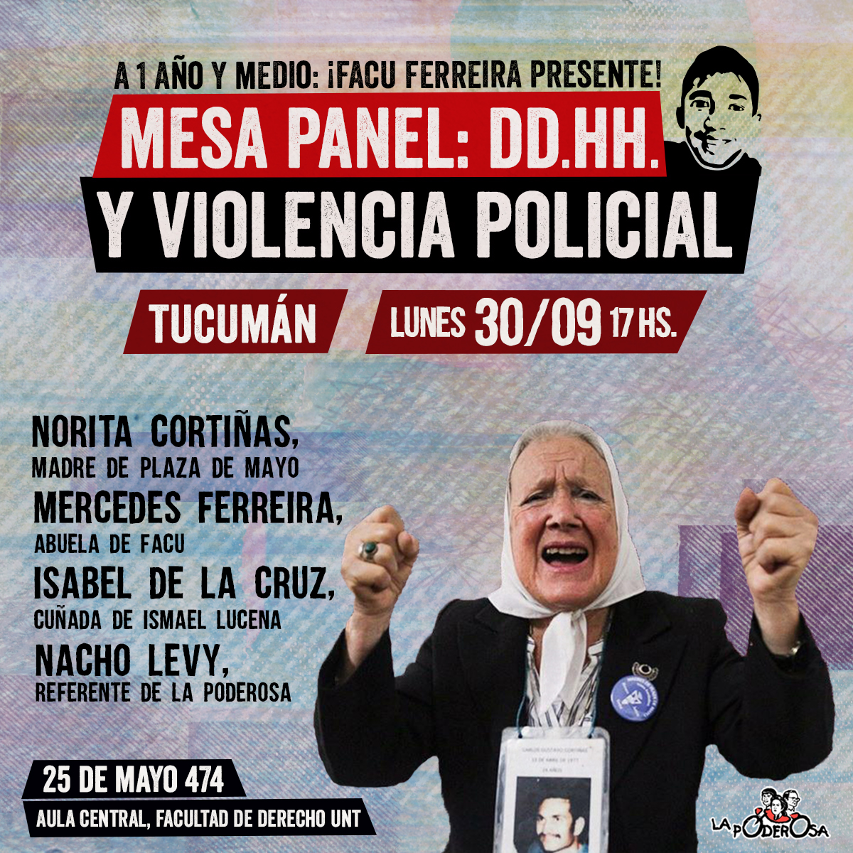 La mesa contará con la presencia de Norita Cortiñas Madre de Plaza de Mayo, Nacho Levy referente de La Poderosa, Mercedes Ferreira abuela de Facu e Isabel de la Cruz cuñada de Ismael Lucena, ambos víctimas de gatillo fácil.