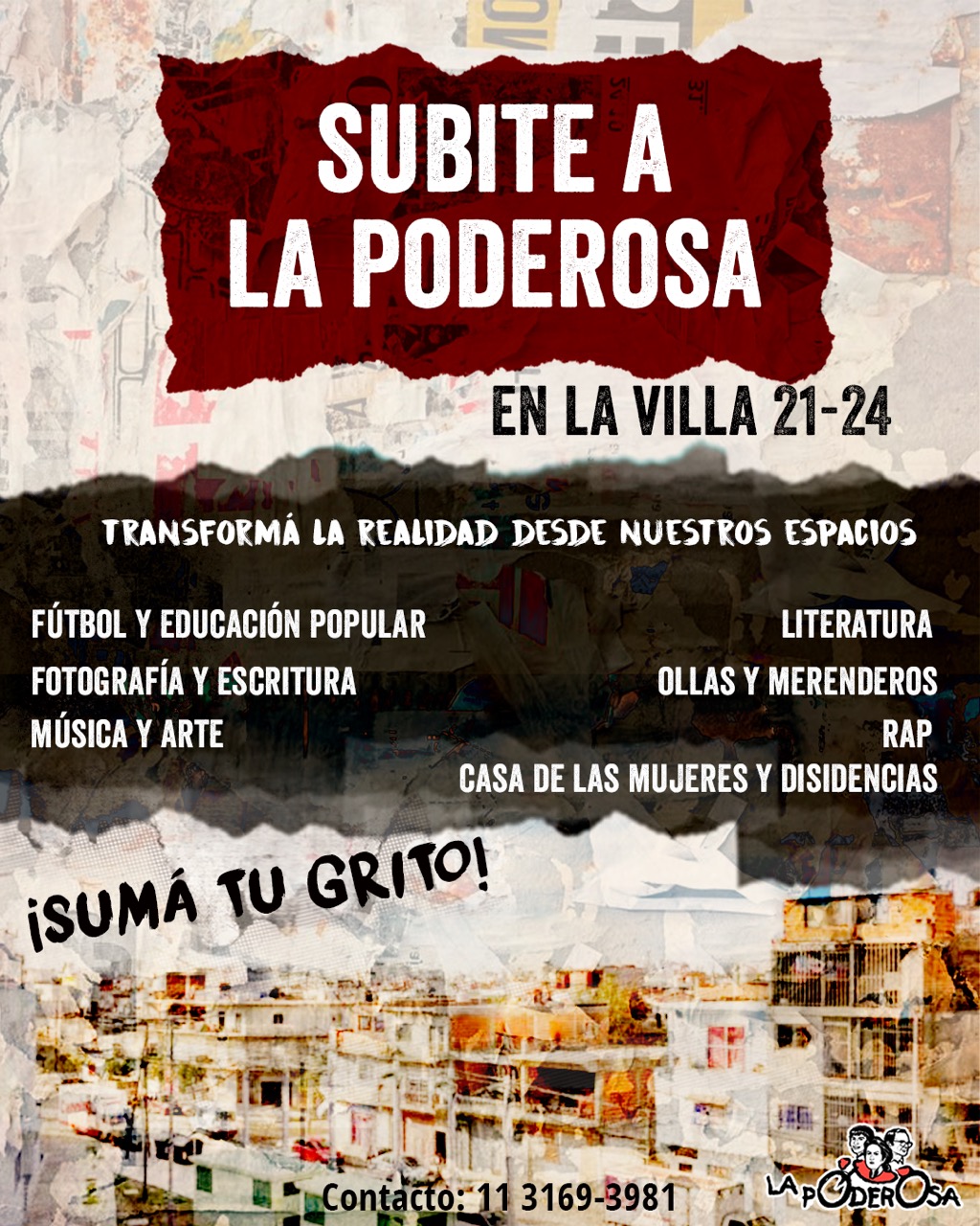 Con una perspectiva bien feminista y villera te invitamos a sumarte a la 21-24 para que construyamos desde abajo en el barrio. Vení a retratar el camino de la transformación que nació de la comunicación y la educación popular, con fútbol, fotografía y escritura, con música y arte, ollas populares, rap y Casa de las Mujeres y Disidencias.