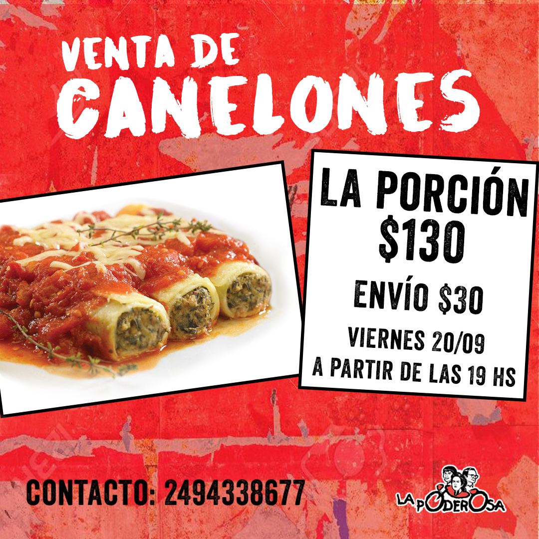 Podés obtener tu porción de canelones por $130 en el Centro Cultural El Cole. O te la llevamos a domicilio por $30 más.