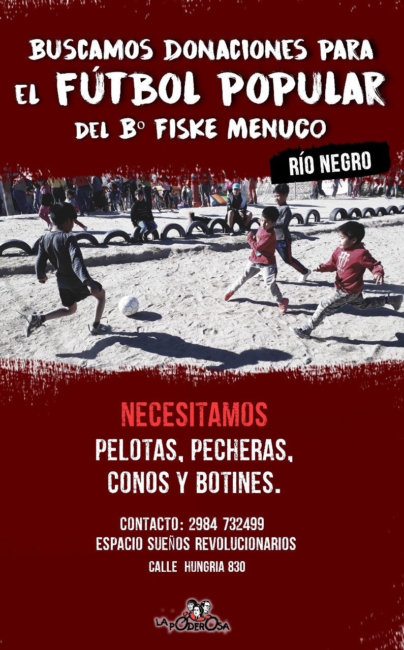 Nos calzamos los botines para dar marcha al fútbol popular y necesitamos tu ayuda para que podamos entrenar con los materiales correspondientes: conos, pecheras, pelotas, canilleras, botines, guantes de arqueros. Todo lo que puedas aportar suma a que las y los pibes del Fiske puedan gambetear las desigualdades, jugar de local contra la falta de urbanización y meterle un par de caños a las injusticias cotidianas.