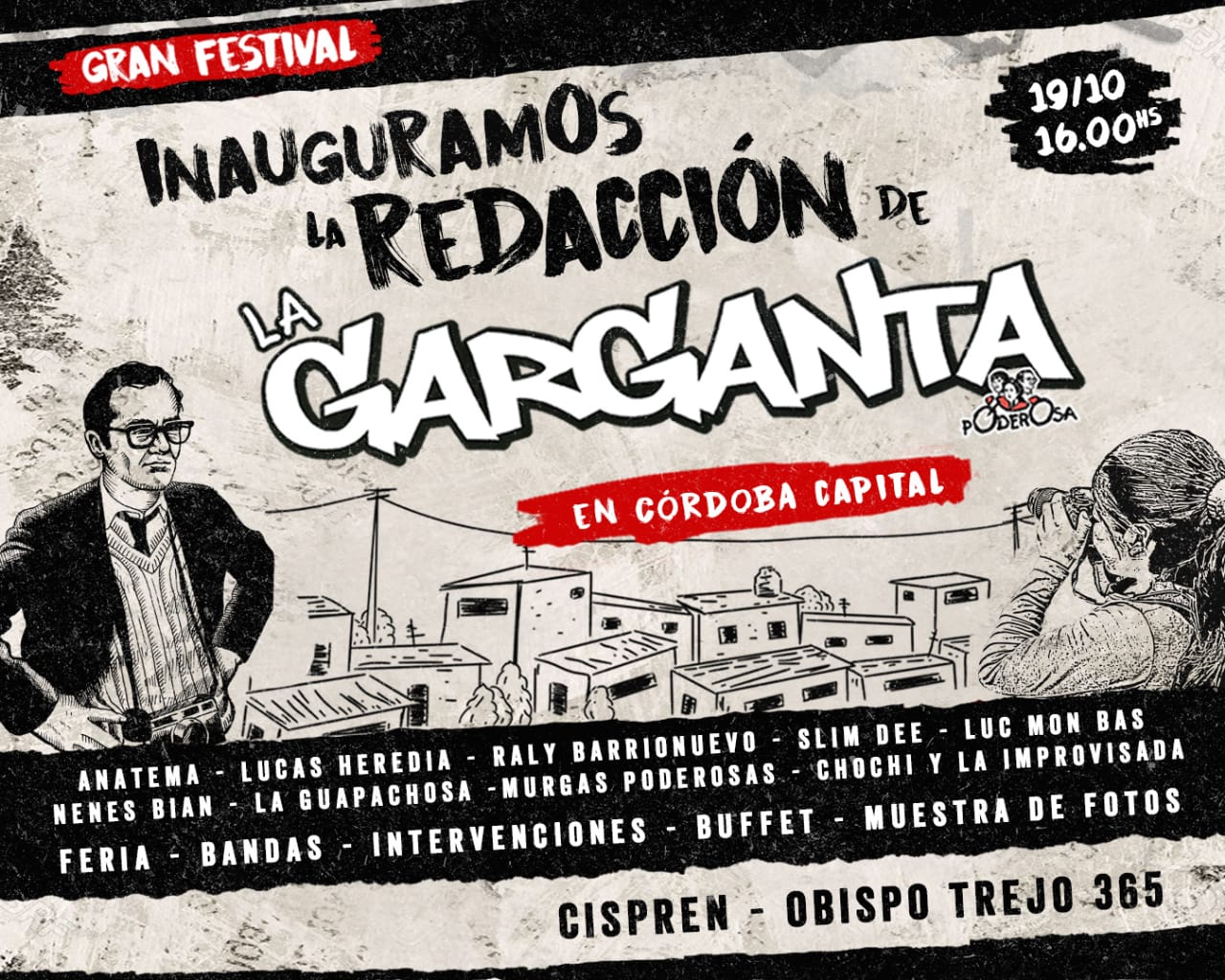 Periodismo de base, de lucha: la resistencia de la cultura villera, que mañana inaugura una nueva trinchera que no, no es periférica, no es chiquita, no es vieja: te la contamos desde adentro pero tendremos nuestro espacio cordobés en pleno centro. Dando batalla contra la prensa amarilla, gritando las verdades y demandas de nuestra villa.