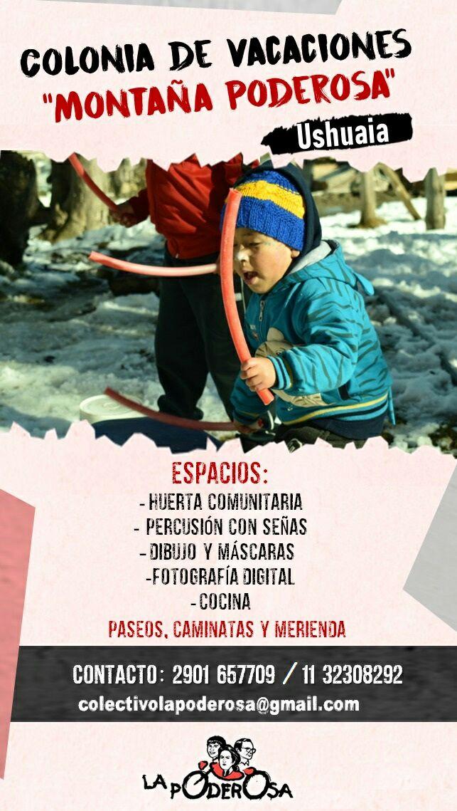¡Enero 2020 se viene con todo! Llega la Colonia de Vacaciones «Montaña Poderosa» al Barrio Mirador Ushuaia. Desde el sábado 04/01 hasta el domingo 02/02, en el horario de 14 a 18 horas, vamos a compartir encuentros, paseos y meriendas llenas de amor y risas para tranformar la realidad de las niñas y niños de nuestros barrios.