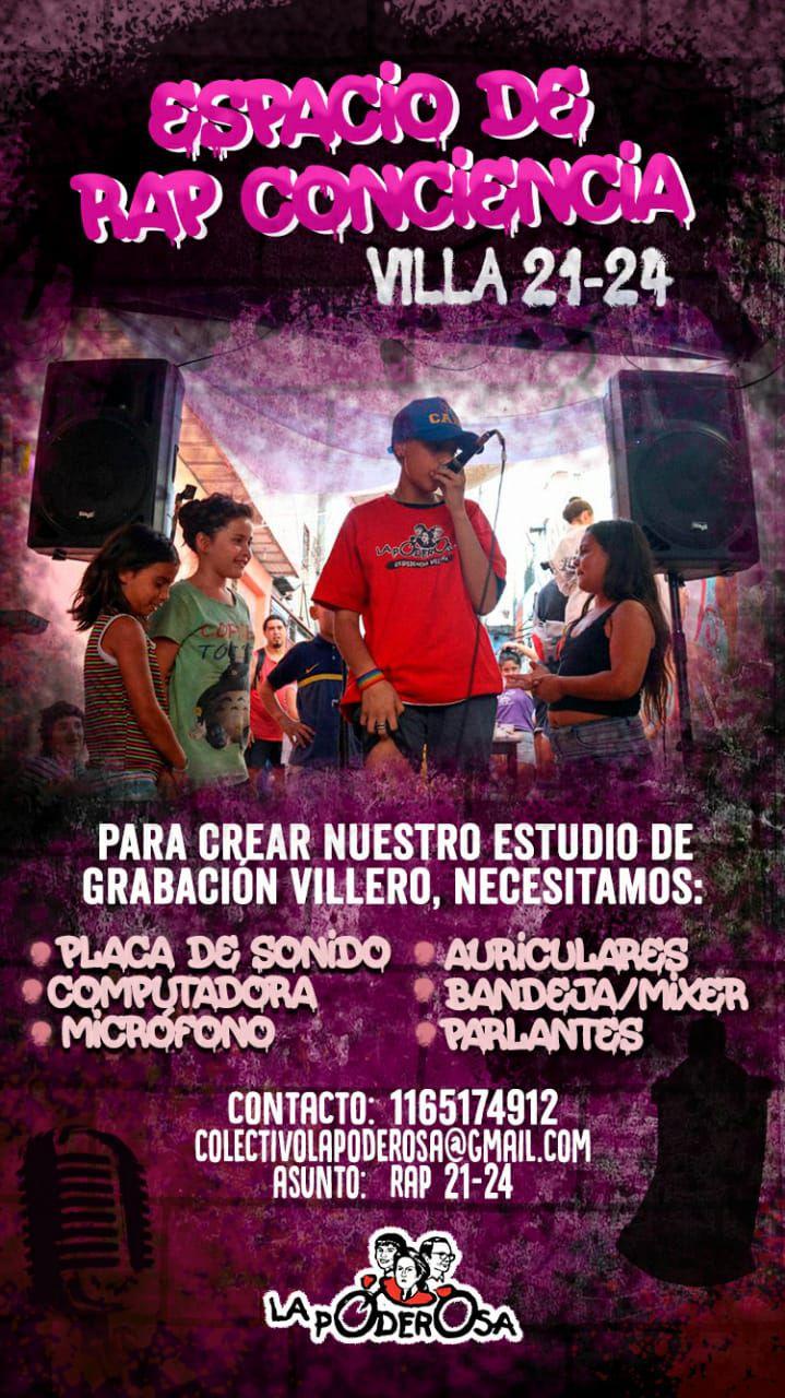 Y como arrancamos y las rimas ya no pueden parar, nos pusimos en campaña para generar nuestro propio estudio de grabación villero. Grabar los gritos de las pibas y los pibes es significativo: ¡podemos transformar la sociedad con poesía y freestyle!