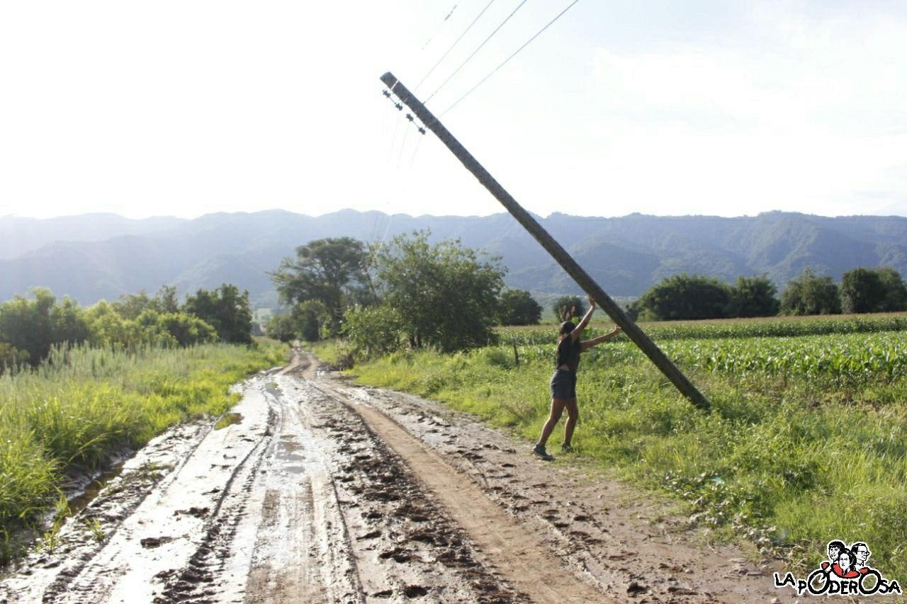 Si se cayeran los postes, el riesgo de explosión sería grande y de las 300 familias que somos, alguien podría electrocutarse. Además, quedaríamos sin luz 200 viviendas, incluida la escuela. Cualquier viento o tormenta podría tirar el tendido eléctrico al barro, que debería ser asfalto.