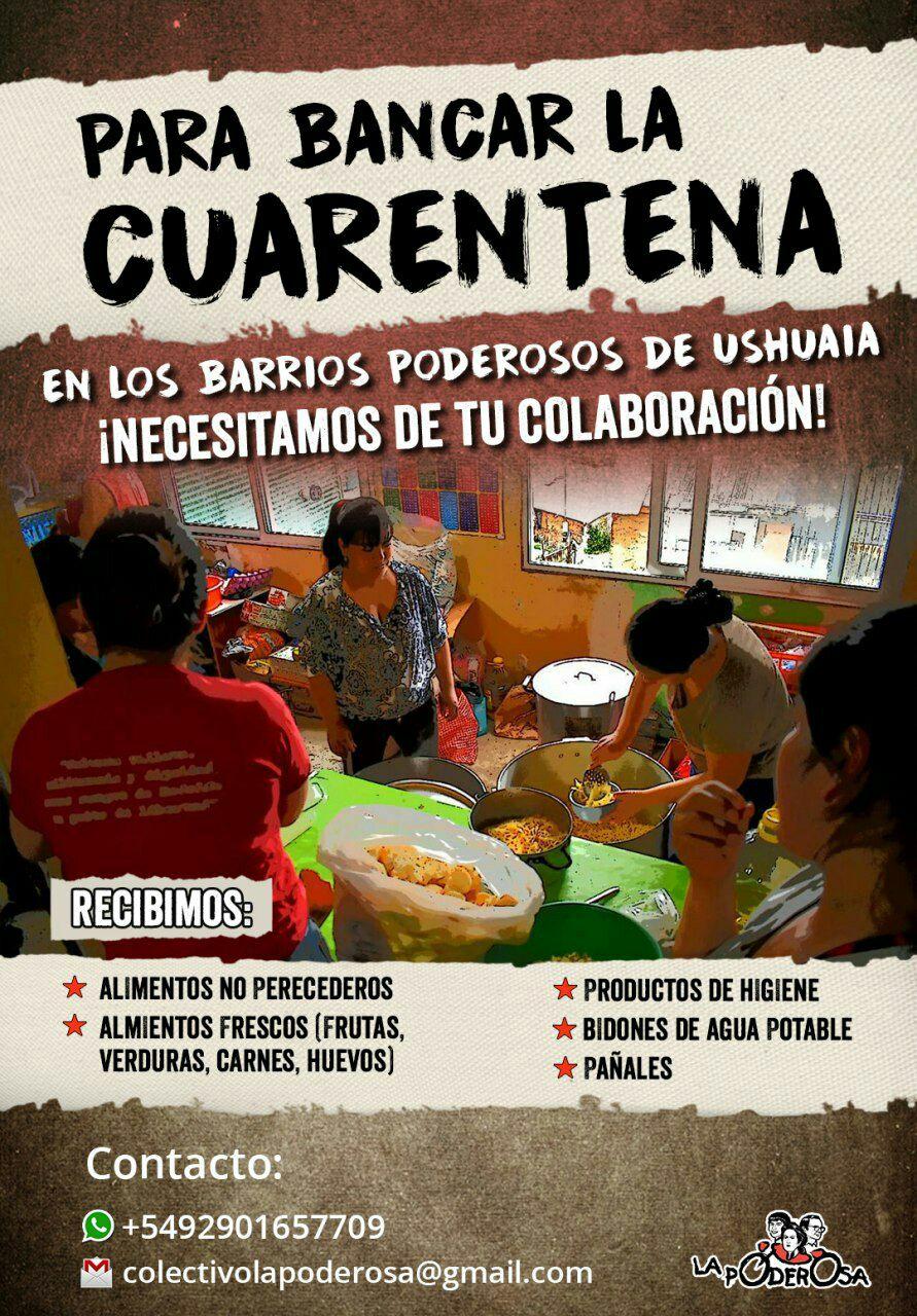 La imposibilidad de trabajar por diferentes circunstancias implica no poder abastecernos de alimentos y productos de primera necesidad, como los que cualquier familia necesita para vivir. Por esto es que desde la Asamblea Interbarrial Poderosa de Usuahia – que contiene al barrio Mirador Ushuaia, barrio Escondido y barrio Obrero – estamos solicitando la colaboración de todas las personas con productos para sostener la provisión a las más de 50 familias que asistimos a nuestra olla popular y a la merienda que repartimos para niñas y niños.
