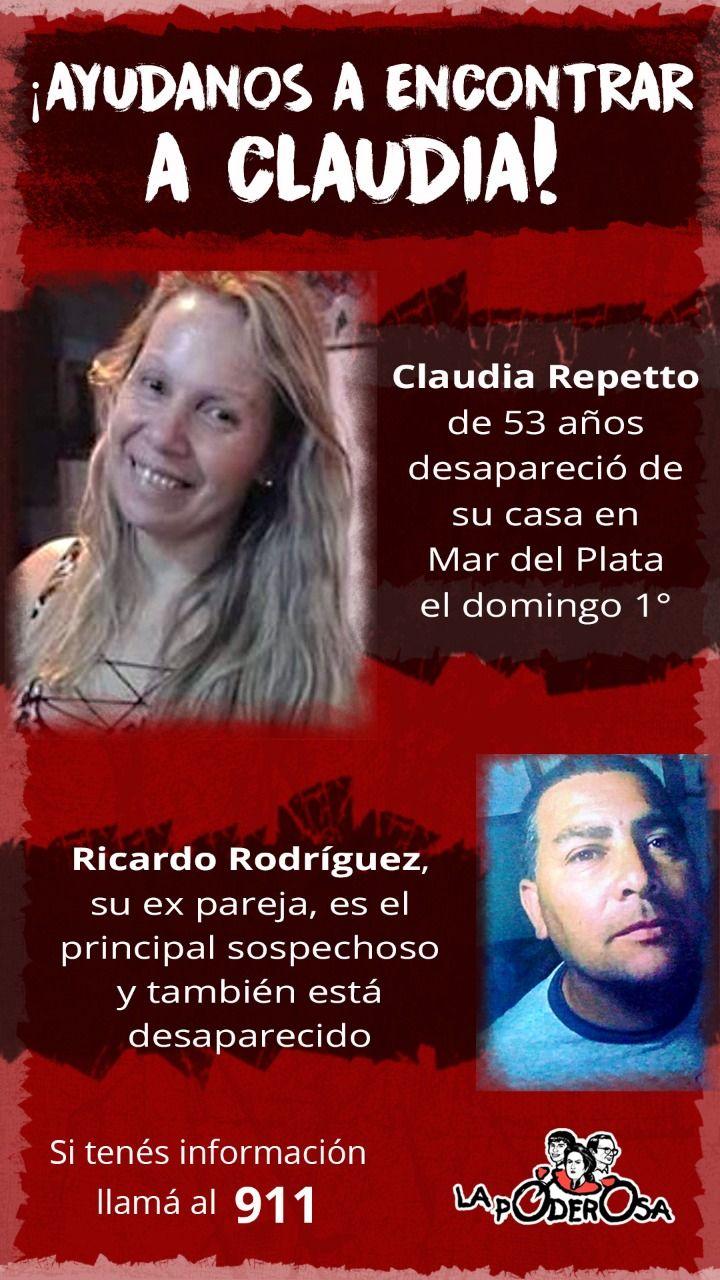 El domingo, Rodríguez la vio bajar del auto de un amigo en la esquina. Según declaró su propia hija más tarde, “él se puso loco”. El lunes Claudia no se presentó a trabajar ni respondió el teléfono. Desde entonces está desaparecida y también se desconoce el paradero de Rodríguez. La denuncia fue radicada en la UFI N°1 de Mar del Plata, a cargo del fiscal Fernando Castro. La familia la busca desesperadamente y reclama una búsqueda más activa por parte del Estado.