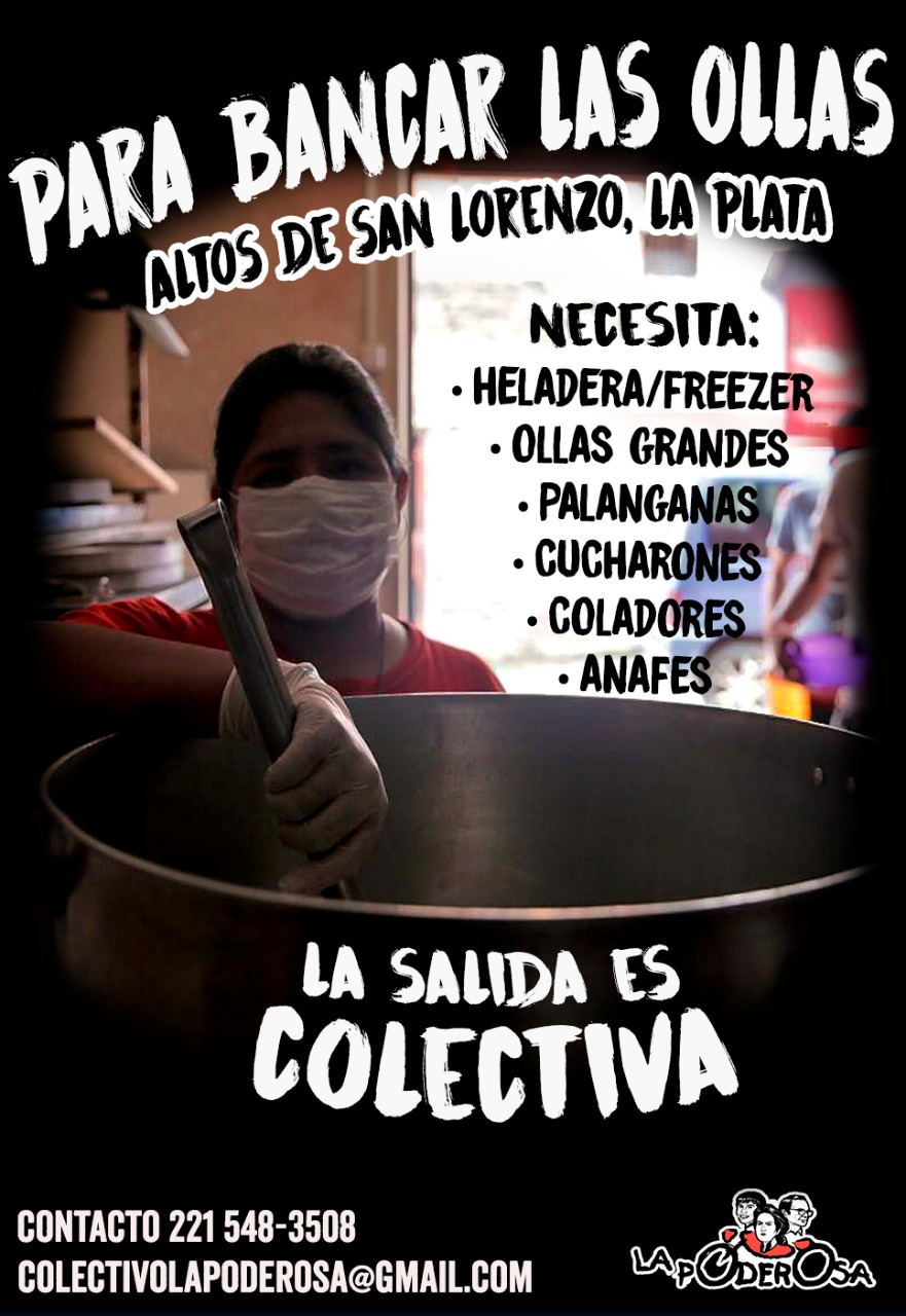 En el barrio Altos de San Lorenzo, en La Plata, todos los días aumenta la demanda en nuestro comedor «Las Poderosas». Cada vez son más las y los vecinos que se acercan con su tupper y si bien en el barrio sobra solidaridad, lo que falta es equipamiento para cocinar. Aunque los días de trabajo sean cada vez más largos, vamos a seguir parando la olla hasta que alcance para todas y todos; para que el guiso llegue a todo el barrio calentito y a tiempo, necesitamos de vos.