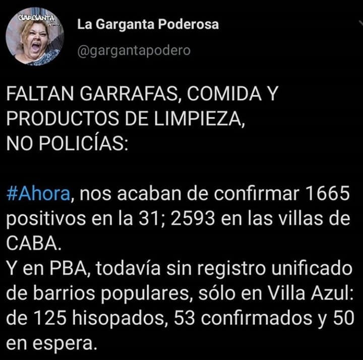 Faltan Garrafas, comida y productos de limpieza, no policías