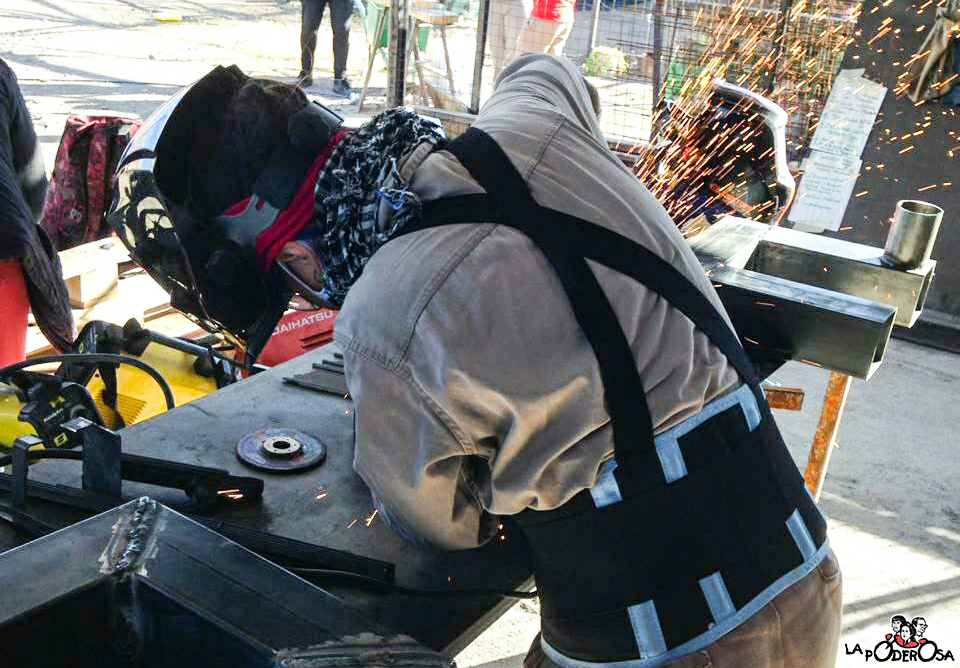 Por eso, desde nuestra asamblea poderosa, formamos un grupo entre seis compañeras y compañeros para encarar un proyecto que nos permita afrontar esta época: aprendimos a soldar y fabricamos con hierro nuestras propias “estufas solidarias”. Cambiamos las garrafas de gas por madera, para calentar nuestros hogares y también para cocinar. Así, la plata nos dura un poco más.
