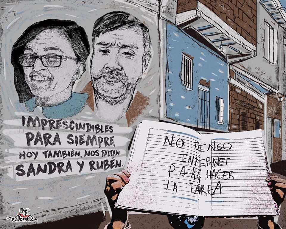 Hoy, Alejandra, hermana de Sandra, aún permanece con un nudo de injusticia en la garganta: “En la causa no se avanzó en nada y por eso todavía exigimos justicia”. Asegura que “estaría detrás de lo pedagógico en este mismo momento, armando bolsones de alimentos o creando manualidades por el día de la niñez”. Es que ella era muy inquieta, no se hubiese quedado con los brazos cruzados esperando nada, se estaría organizando. Principalmente eso es lo que más tenían en común con Rubén, el corazón de su hermano Diego lo cuenta: “Él estaría luchando por la sociedad, como un militante más, atrás de una olla popular”. Se procesó al interventor del Consejo Escolar y a otras siete personas más, pero ahí terminó todo. Todavía falta justicia. Y hace dos años nos faltan ellos.