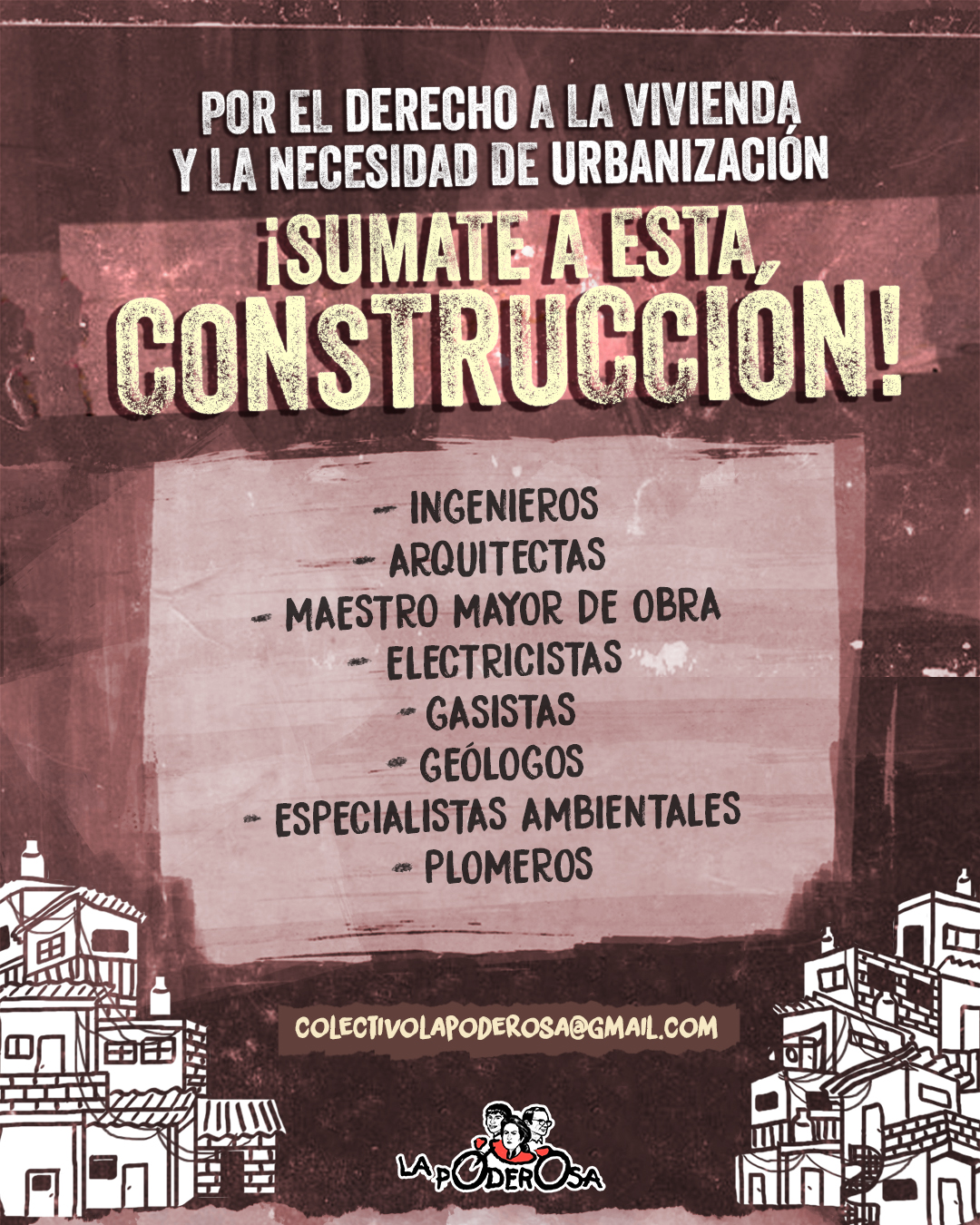 Para luchar por vivienda digna, servicios básicos y urbanización, ¡sumate a esta construcción!
