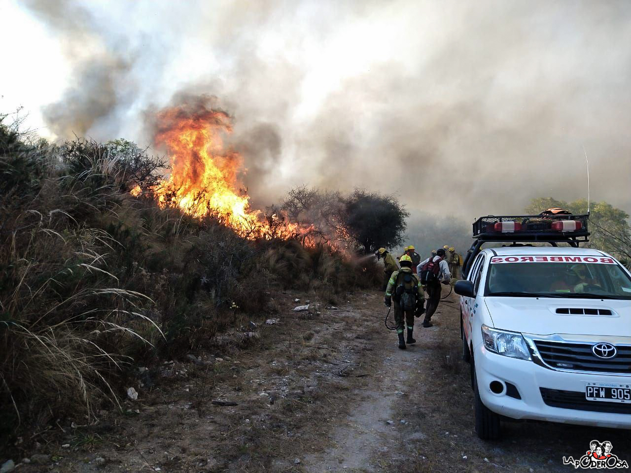 Mientras tanto, es la comunidad organizada la que pone el cuerpo. Santiago Tarduchy es miembro de la Brigada Chavascate y junto a ella, arriesga su vida para intentar frenar lo incontenible: «Somos vecinas y vecinos voluntarios agrupados. Trabajamos con pantalones de faena y camperas no ignífugas. Estamos intentando gestionar el equipamiento correspondiente en algún Municipio, pero hemos ido más a pedir que a recibir. La Secretaría de Ambiente tiene, para todas las Sierras Chicas, dos personas y un móvil que no está en condiciones. No hay recursos en términos técnicos y humanos, tampoco hay sistemas de alarma ni puestos de vigilancia».