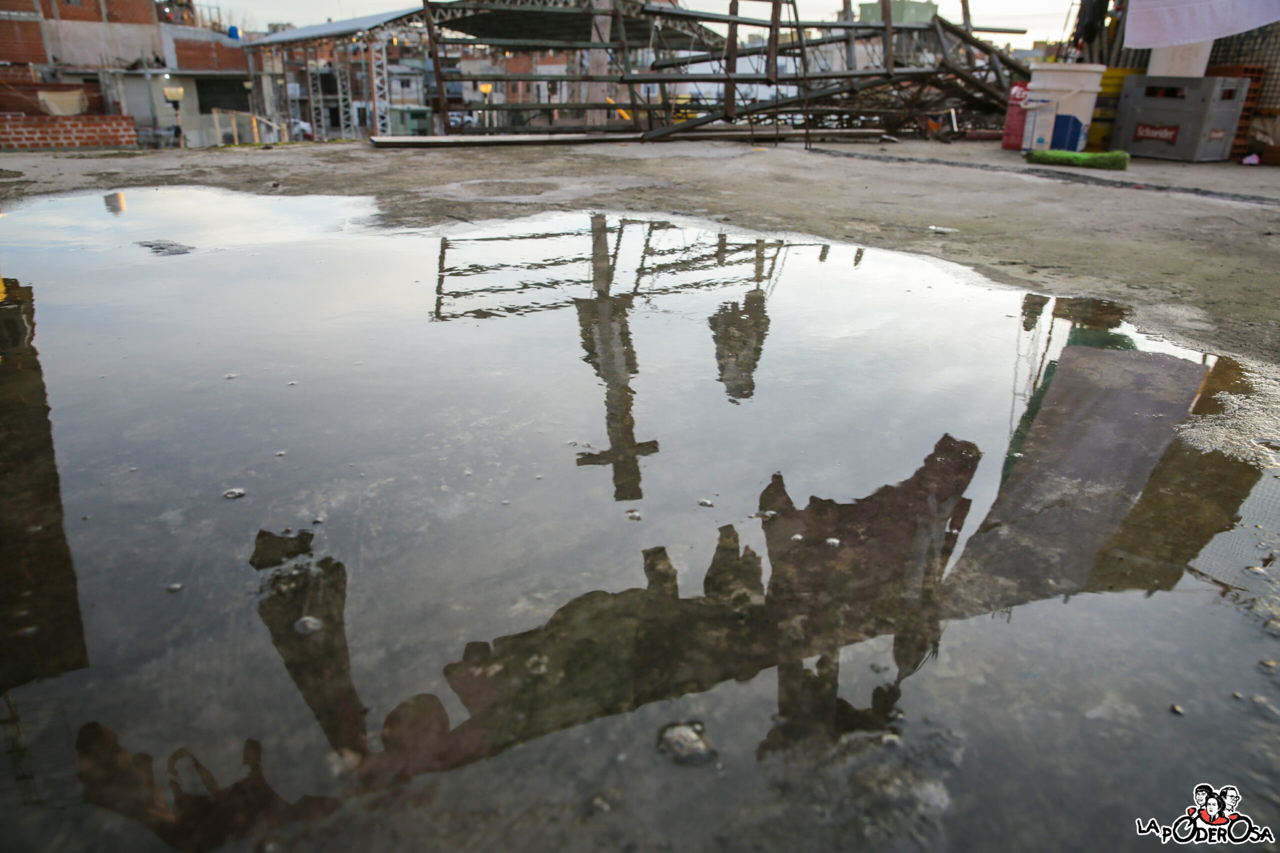 De agua somos, porque de ahí brota la vida, aunque acá no fluya. Los ríos no llegan a nuestras canillas ni nutren nuestras tierras, a pesar que por ella están compuestas las células, las lágrimas y la memoria que nos recuerda. Estamos acá, en nuestros pasillos sin luz para activar la bomba, con pozos artificiales sedientos, con la esperanza del balde esperando que llegue la lluvia, con un líquido contaminado y las madrugadas enteras en que rogamos una gota de mañana. Y acá también, bien abajo, la historia nos recuerda que este desierto fue el bosque de ayer. Que el mundo seco de nuestros barrios supo ser alud, en los tiempos en que el agua y la tierra eran de nadie y eran de todos.