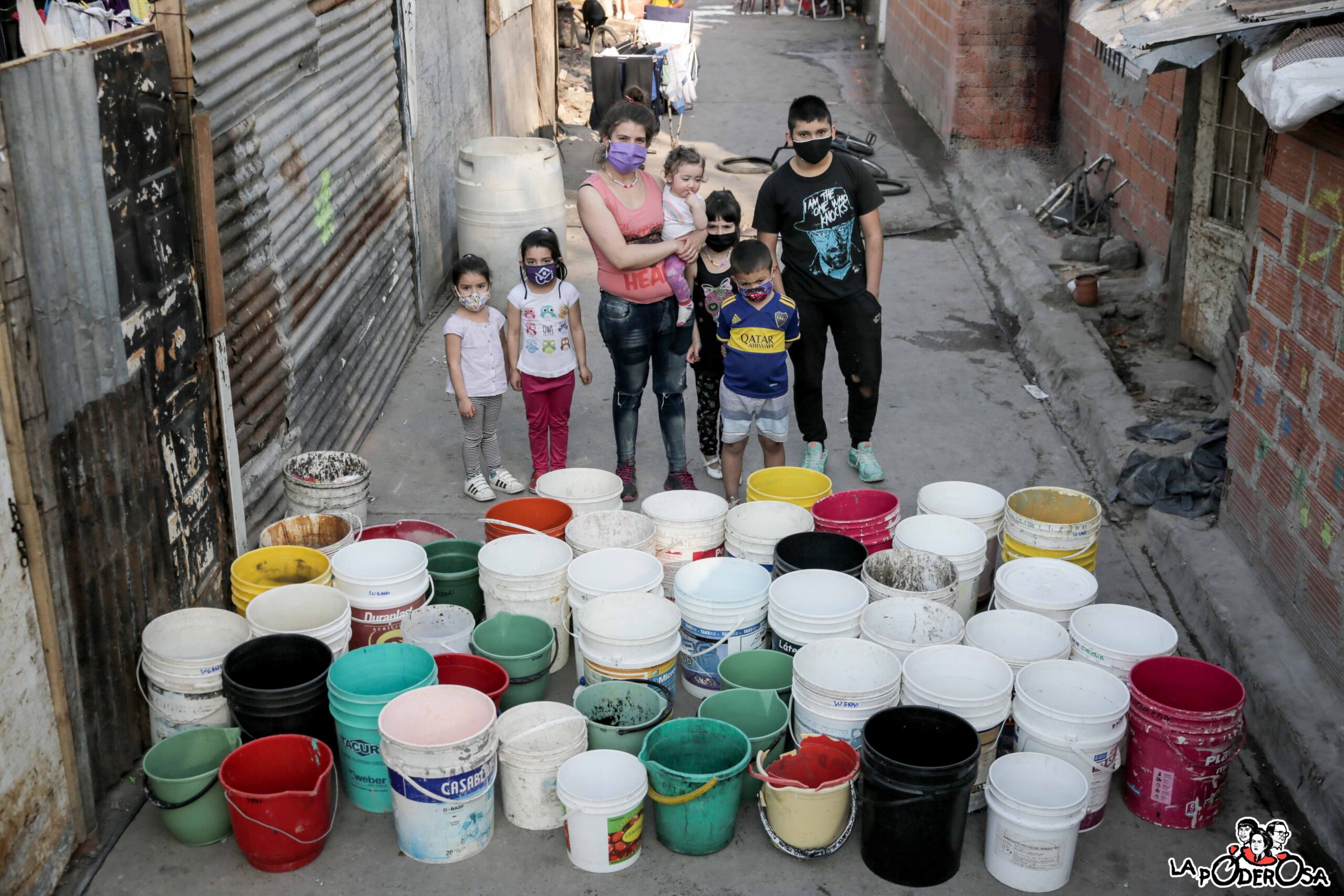 En el 40,9% de pobreza que ayer anunció el INDEC, hay historias como la de Tamara Mazzuquini y su familia, en La Veredita, Villa Soldati. La Organización Mundial de la Salud le dice que ella y sus seis hijos necesitan al menos 150 litros diarios de agua por persona para cubrir todas sus necesidades. Pero acá gritan, con todos los baldes vacíos, como tantas otras comunidades en todo el país, entre la pandemia y el hacinamiento. En el barrio no hay una conexión al servicio de agua y la respuesta estatal es un camión cisterna, ¡que no pasa cuando llueve! Y como Tamara, cientos de vecinas y vecinos corren riesgo hídrico: “Las veces que podemos juntar agua, tratamos de no usar tanto, reutilizamos el agua para tirar en el baño”. En el barrio se convidan unos litros, unas gotas cargadas en bidones, esperando respuestas en casillas muy precarias como la de ella, que ni siquiera tienen un tanque: “Los niños lo necesitan sí o sí. Imagínense que cuando viene el camión, lo primero que aprovechamos del agua es para bañarnos, todos. Y si no viene, no lo hacemos”.