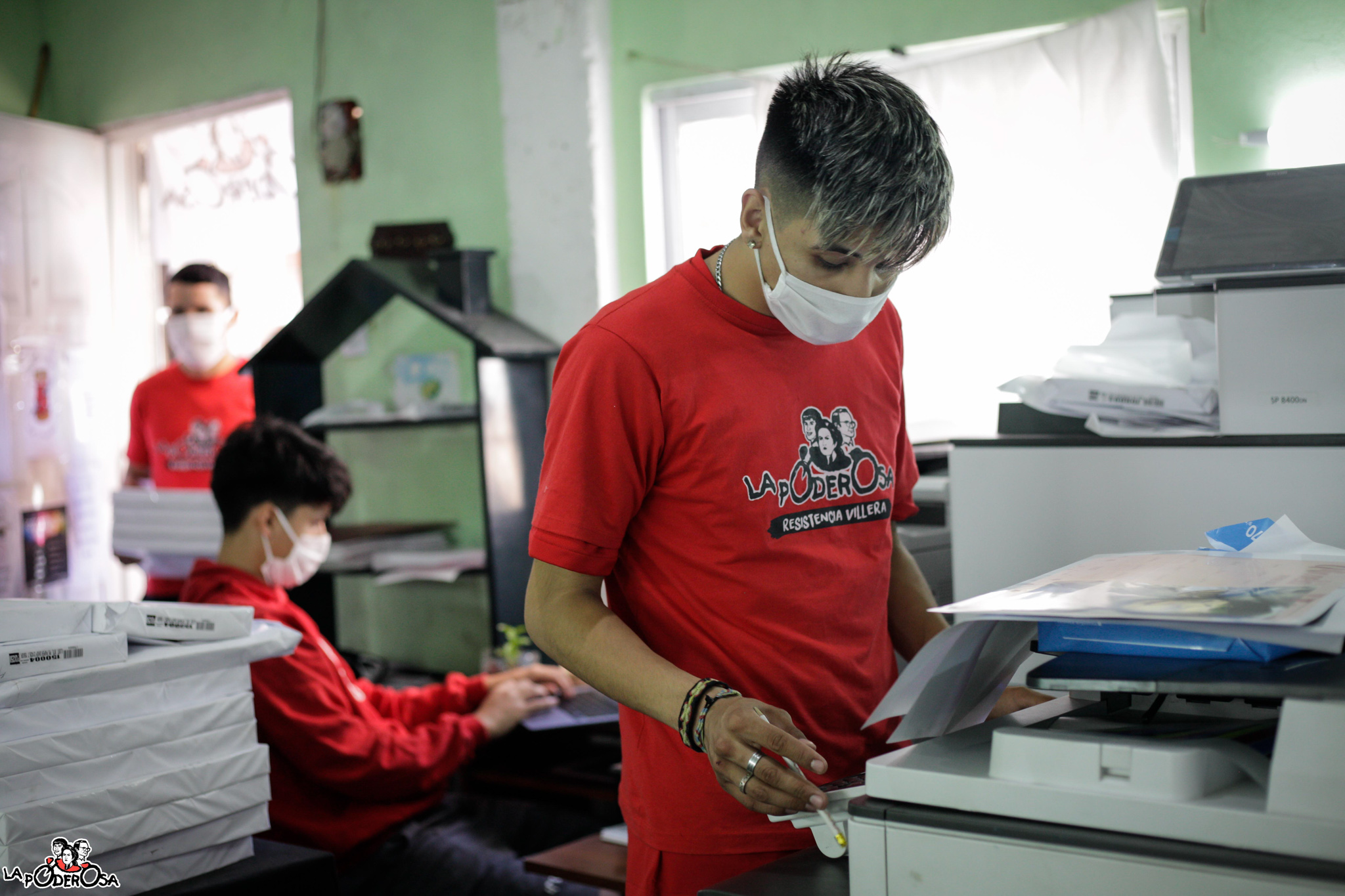 Ashly Loayza, de 17 años, siente que estando en la cooperativa ayuda al barrio por todo el trabajo que se hace y todas las horas que pasan en el espacio: “Este es mi primer trabajo, y sé que si tengo un problema lo tratamos de solucionar entre todos los compañeros”. En un barrio donde, según datos de nuestro Observatorio Villero, una de cada cuatro familias no tenemos acceso a Internet y el 80 % que sí tenemos es a través de un celular», lo que hace que sea una conexión más lenta y más cara. Sólo el 33% de las familias usamos alguna computadora. Acá, la cooperativa se convirtió en un actor social importante en la dinámica del barrio: inscripciones a becas escolares, turnos para trámites diversos, fotocopias, calendarios, currículum, gestiones de permisos para trabajadores esenciales, para quienes no se les garantiza que puedan llegar a su trabajo o para asistir a familiares en necesidad, fueron y son tareas diarias.