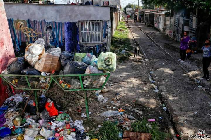 Ahora, intenten intensificar el tacto. Háganlo. Sientan el aire puro que se desvanece entre las bolsas que van corriendo para caminar y la mugre que deben juntar para que no se lastimen los chicos cuando salgan a jugar… Acá no logramos sentir la brisa limpia porque acarrea olores de la basura acumulada y menos podemos palpar los servicios básicos que deberían ser tangibles. Nos duelen los pies de tanto caminar hasta alguna de las puntas del barrio donde hay contenedores. Acá dentro sólo tenemos dos canastos pequeños para más de 250 casas que rodean la zona que no dan abasto, porque ya el Ministerio de Ambiente y Desarrollo Sustentable en Argentina dijo que “cada habitante produce 1,15 kilogramos de residuos sólidos urbanos por día”. Ahora multiplíquenlo por el total. Lo acomodamos como podemos para que no se vuelva un volcadero a cielo abierto por la falta de recolección. Ya hace más de 2 años que firmamos una petición solicitando más tachos y recolección de basura al Municipio de Avellaneda y todavía no tenemos respuesta.