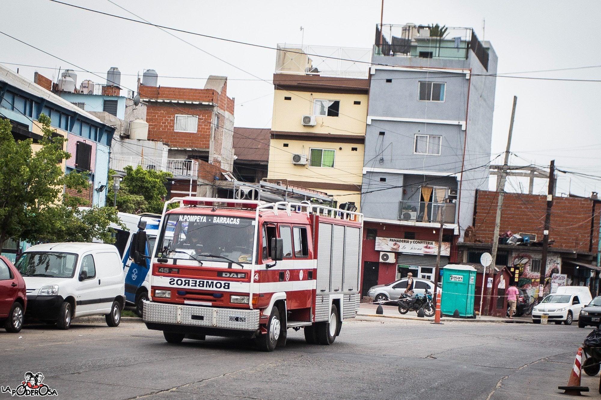 La Asociación Civil Bomberos Voluntarios Nueva Pompeya y Barracas Sur se levanta sobre la Avenida Iriarte 3520. La idea brotó en agosto de 2016 y para el siguiente 17 de octubre ya flameaba la bandera argentina en el primer cuartel de bomberos villeros del país. Cuando entramos a la oficina del vicepresidente de la Asociación, Carmelo González, nos dijo emocionado: “Mucho de lo que ven lo tenemos gracias a que pusimos dinero de nuestros bolsillos y la autogestión. Para nuestro primer camión, una vecina puso 100 mil pesos que tenía ahorrados para los quince de su hija”. Así llevan cuatro años de lucha, entre polladas, rifas y choripaneadas para solventar todos los gastos.