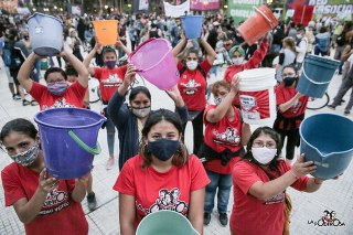 Hoy, en el Día Mundial del Agua, también tomamos las banderas para escurrir un poco de nuestra bronca en las calles de todo el país y de todo el planeta, porque nos estamos muriendo. Con la garganta seca y con la camiseta transpirada, le gritamos a las megaempresas, al silencio gubernamental y a quienes no quieren dimensionar las consecuencias de la emergencia ambiental, ¡ya no da para más! Por eso nos juntamos en un mar de gotitas, para empaparlos de nuestra realidad y quitarnos las vendas: más de 5 millones de argentinos y argentinas no tienen agua en sus viviendas. Hay quienes abordan a la emergencia climática como si fuera un mito, aunque haya más de 60 mil hectáreas incendiadas en todo el país, sólo en los últimos tres meses. Mientras tanto, el Congreso cajoneó la Ley de Humedales.