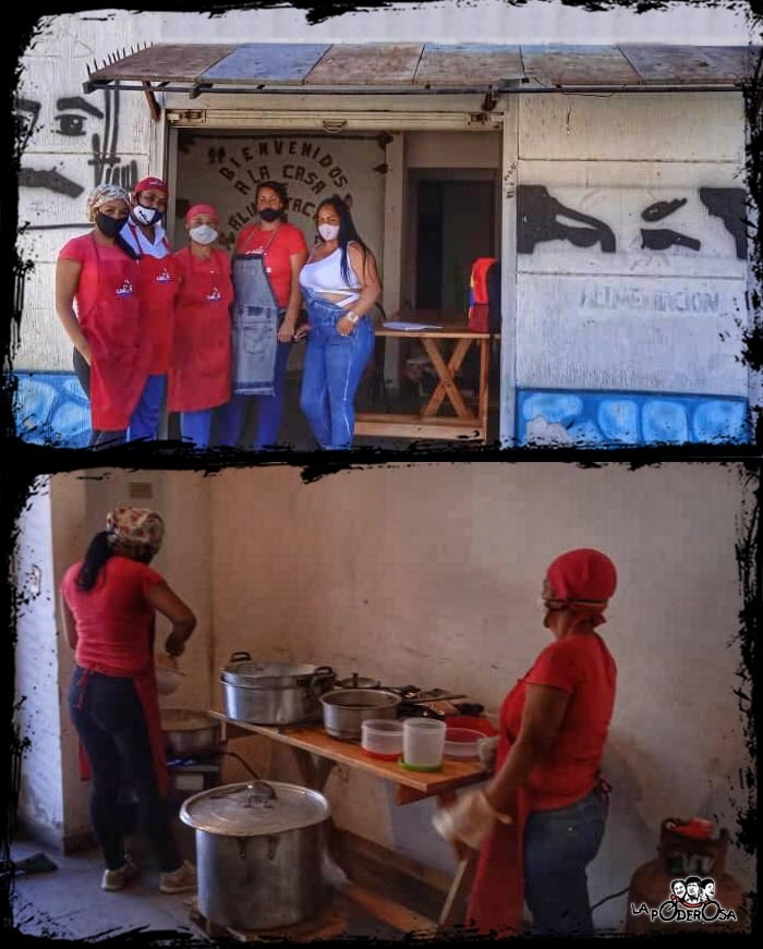 Aquí, en el comedor “El Legado de Chávez”, comenzamos muy temprano a trabajar en el almuerzo. Las cuatro compañeras que formamos parte del espacio laburamos de forma colectiva, apoyándonos antes las dificultades que nos plantea nuestra labor. Sin embargo, lamentamos hacer nuestras tareas con la cocina deteriorada y la falta de gas directo. Para llenar nuestras ollas debemos conseguir legumbres, hortalizas, ajíes y otros alimentos mediante canje. Lo que más nos hace falta hoy son aliños, aceite, sal, cucharones, colador, paletas y viandas.