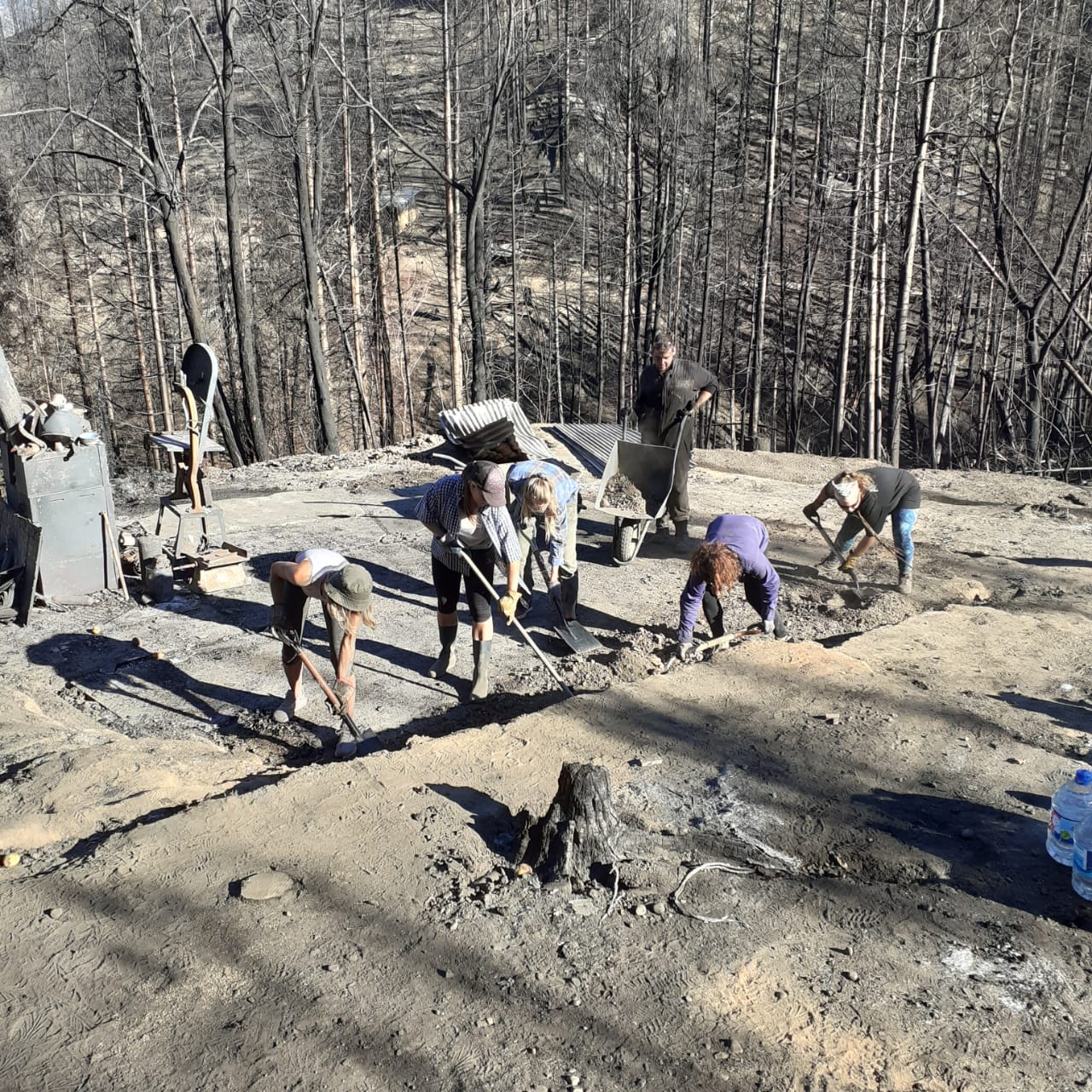 En un suelo que albergó históricas resistencias, siguen de pie en comunidad, siempre resurgiendo, como describe Juan Chávez: «Los alimentos que nos donan, se organizan y se acumulan en puntos de acopio para después distribuirlos a los vecinos. Todo ese apoyo es de la gente, porque el Municipio ni aparece”. La Comarca Andina, que tanto entusiasma por sus paisajes, hoy viste un color gris que es consecuencia del fuego. Esto es lo único que ven muchos ojos, que siguen sin suministro eléctrico ni de agua y sin soluciones efectivas por parte del gobernador Mariano Arcioni. La destrucción arrasó hectáreas de bosques nativos, pero también los terrenos y las casas de tantas y tantos pobladores, como Osvaldo Tarsia: “Estamos tristes, la verdad. Permanecemos a la intemperie con los sillones. Cada día lo pasamos muy mal, porque seguimos sin poder creer todo esto. Miro a nuestro alrededor y sólo veo que está todo quemado”.