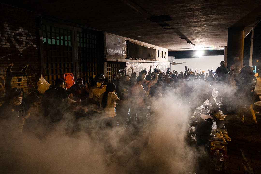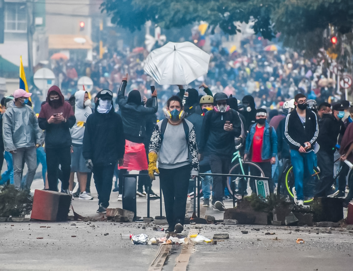 Vengan, miren. Miren acá, en cada recuadro de la realidad colombiana. Descubran el dolor a través de cada fotógrafa y fotógrafo que pone el cuerpo en las calles junto al pueblo y esquivan las balas de un Estado empresarial. Sientan la resistencia gracias a cada compañera y compañero que arriesga sus ojos para mostrar las cifras terroríficas de la represión durante el Paro Nacional, que tuvo más de 40 asesinados por la Policía colombiana, 18 mujeres abusadas sexualmente por las Fuerzas de Seguridad, más de 2900 víctimas de la violencia policial y 300 personas desaparecidas tan solo desde el 28 de abril.