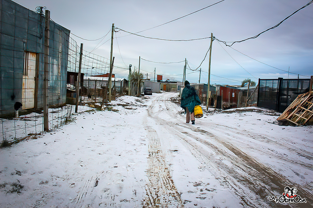Se nos resbalan las palabras en toda la escarcha que comienza a acumularse en la Patagonia. En medio de las heladas nocturnas, en el Barrio Madres a la Lucha de Río Gallegos, el frío nos despierta como tarde a las siete de la mañana; cuesta seguir durmiendo con el cuerpo cansado de tanto contraerlo para acurrucarnos. Nos sacamos de encima las dos o tres frazadas que intentan calentarnos durante la noche y caminamos hasta la cocina para apagar el horno, mientras rogamos que el calor en nuestras casas dure más de media hora. Y no sucede. La temperatura desciende a menos de cero en minutos, los techos y las paredes se hacen hielo por fuera.